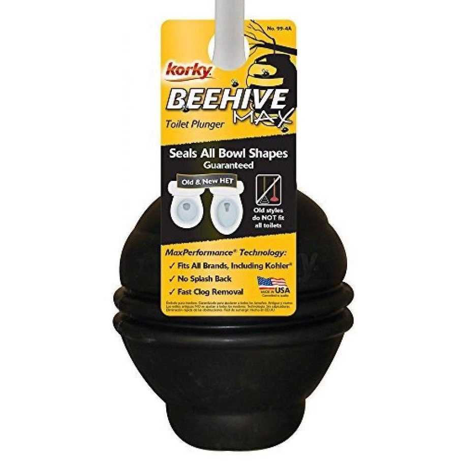 Korky 99-4a 99-1AM Beehive Max Universal Fits All Old and New Powerful plunge-easy Grip t-handle-made in USA Toilet Plunger, Black