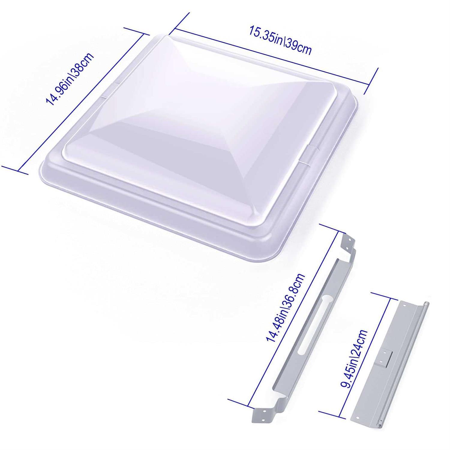Why Choose Us: This RV vent cover fits a standard 14″ vent, compatable with Ventline roof vents prior to 2008 and Elixir roof vents starting 1994. Excellent Vent Lid Replacement: This RV vent cover is compatable with most popular roof vents. Keeping RV bathroom vent air fresh, insulated rain leaking and prevent heat entering inside RV. It fits for Camper, Motorhome, Trailer. Premium Material: RV ceiling vent cover is made of polypropylene plastic, UV-resistant, sun-proof, extends the lifespan. The metal crossmember and metal hinge is made of stainless steel, rust-proof, anti-corrosion. Package List: 3 x vent cover RV 14″x 14″; 3 x metal crossmember; 3 x metal hinge; 18 x screws; 18 x nuts; 1 x 6″ RV vent fan blade; 1 x 12 Volt D-Shaft RV fan motor. All-climate Use: Whether it’s windy or rainy, you can travel worry-free. Keep the air in your RV fresh, windproof, rainproof, snow protection. /b br br When your old roof vent cover is no longer usable, you will find us – 14″x14″ universal RV vent covers. br br What makes our products unique? /b br br It is our greatest wish to provide convenience for your life. br br What will you get?