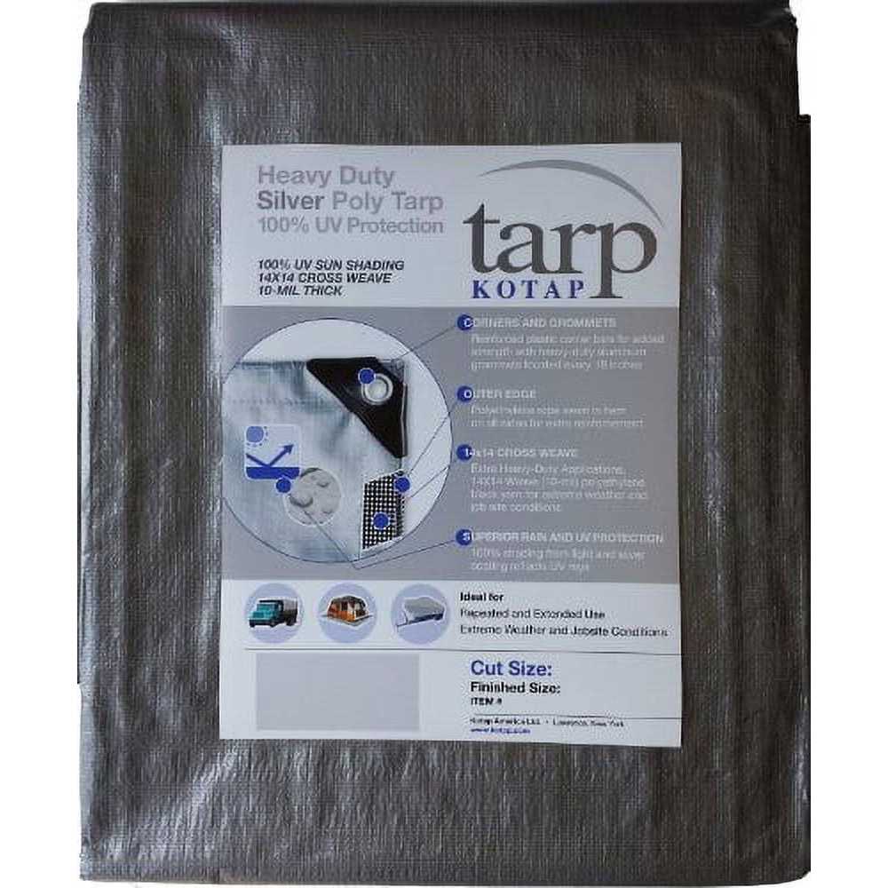 Kotap 6-ft x 10-ft Heavy-Duty 14 by 14 Cross Weave UV Blocking 10-mil Silver Poly Tarp, Item: TRS-0610