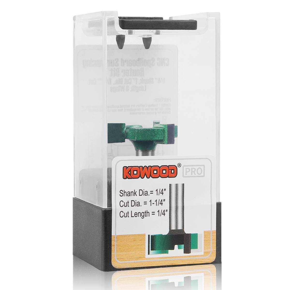 CNC Spoilboard Surfacing Router Bit 1/4” Shank 1-1/4” Cut Dia 1/4” Cut Length 3 Wings Professional Woodworking Tools by KOWOOD Pro