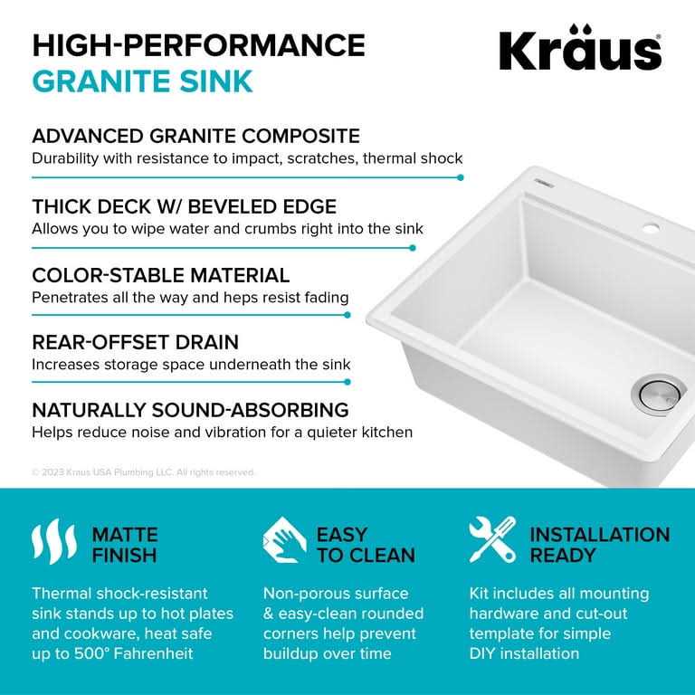 Be the first to review “Kraus 25 In. Bellucci Granite Composite Workstation Drop-In Top Mount Single Bowl Kitchen Sink with Accessories KGTW12-25WH”