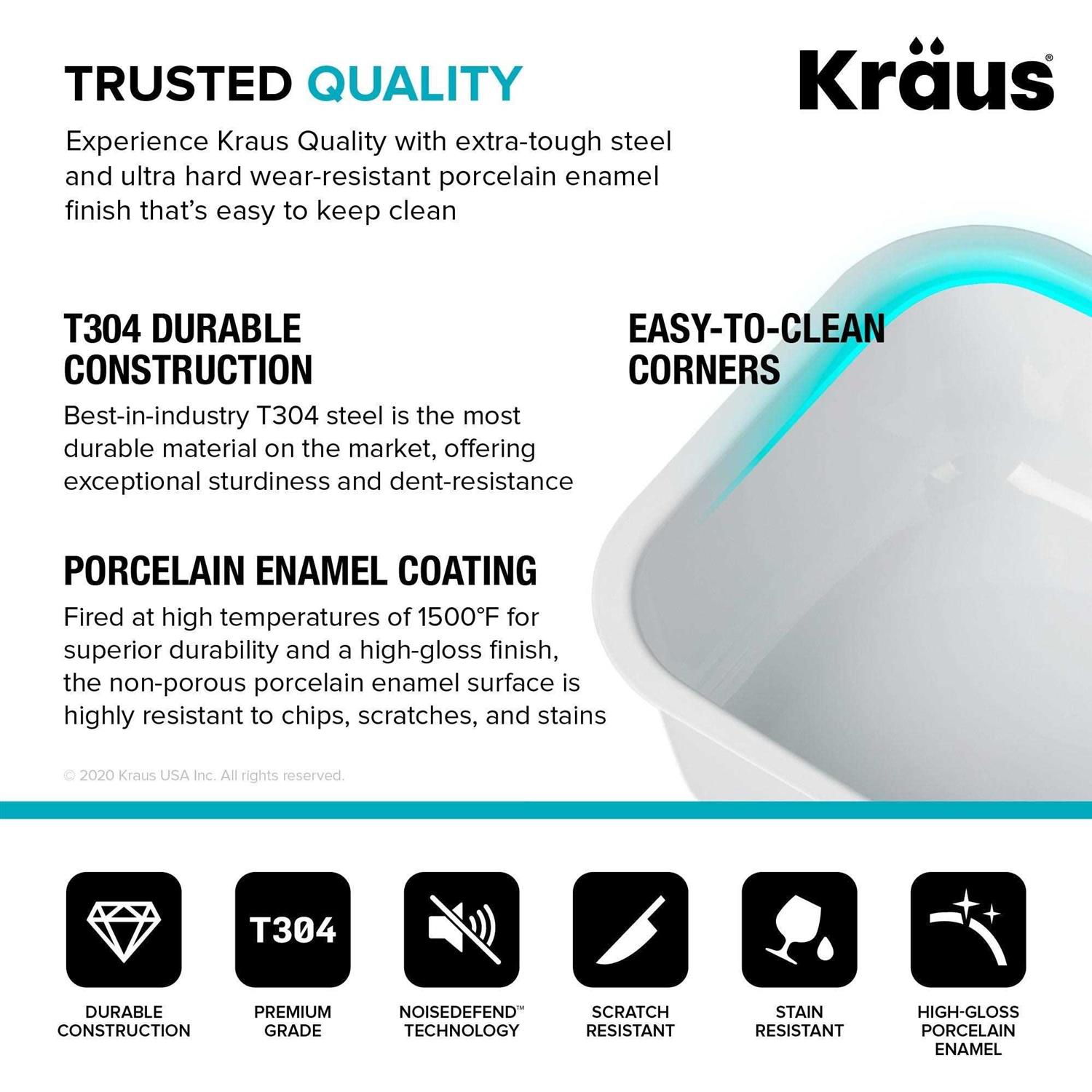 Enjoy the unmistakable style of enameled steel sinks in a range of colors. Combing the strength of steel with a resilient enamel coating. Kraus Pintura Series kitchen sinks offer the high end look of cast-iron with the benefits of a durable steel core making it easy to install and maintain. The spacious undermount basins are chip and stain resistant and suit any decor style, from classic to modern kitchen.