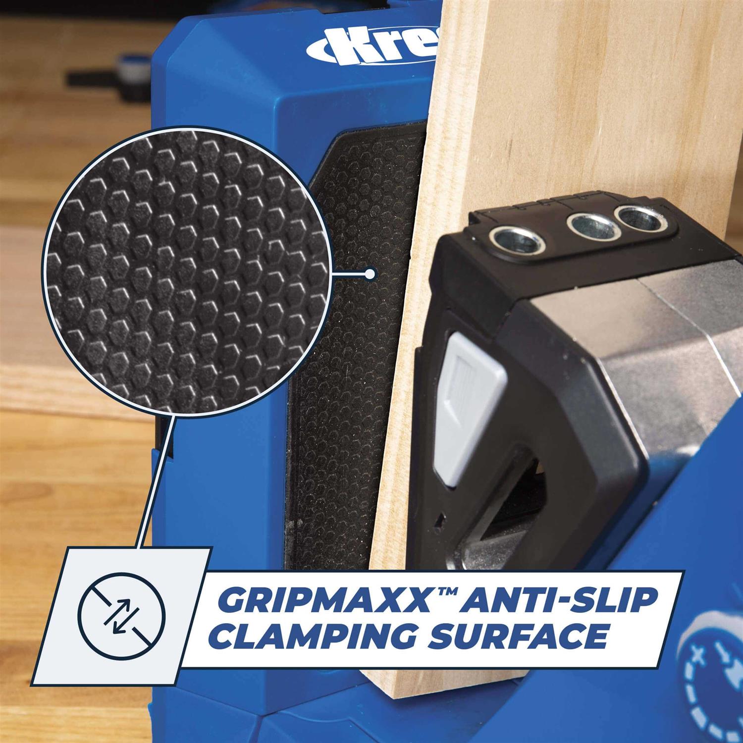 Build pocket-hole projects faster than ever! The Pocket-Hole Jig 720 is the most advanced jig yet from Kreg with that features make project building incredibly efficient. One-motion clamping with Automaxx clamps your material in place and it automatically adjusts to the exact thickness of your material from to 1-. GripMaxx anti-slip holds the project piece securely so you never have to worry about shifting while you drill pocket holes. This sturdy jig also features a steel-reinforced spine for years of use. The on-board tool storage keeps accessories like the hex wrench and drill bits close at hand. With the Pocket-Hole Jig 720 you get 60 Kreg pocket-hole screws and a free project plan so you can start building right away.