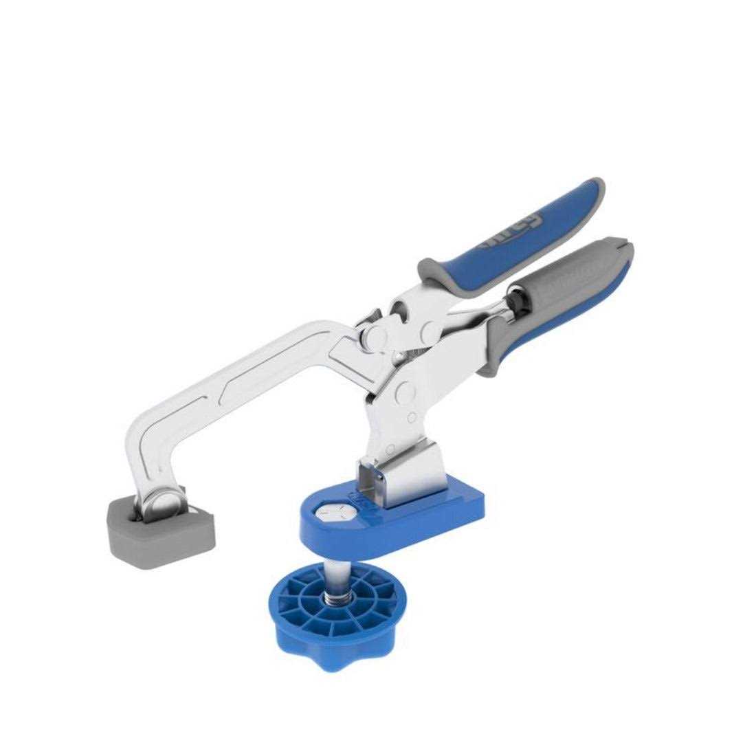 By combining a 3 in bench clamp with a bench clamp base this kit allows you to take the power versatility and convenience of a Kreg bench clamp almost anywhere. The bench clamp base also available separately is made from durable cast aluminum. It can be mounted quickly and easily to any work surface that’s equipped with 3/4 in or 20 mm bench dog holes. Or you can simply drill a hole in any work surface and attach the bench clamp base. You can also remove the bench clamp base just as easily when not in use or to move it to another location. Plus the base swivels to offer 360 deg clamping capability. The versatile bench clamp in the kit is perfect for Kreg Joinery and for project assembly routing cutting sanding drilling and more. Thanks to Automaxx auto-adjust technology the bench clamp adjust to match material thickness automatically with a simple squeeze of handles whether the material is thick thin or in between. You can clamp a 2 x 4 and then a piece of 1/2 in plywood without ever readjusting the clamp.