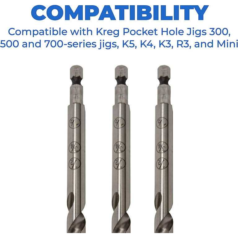 The Kreg Easy-Set Pocket-Hole Drill Bit is the same stepped bit that comes with Kreg 300-Series Pocket-Hole Jigs. This bit features engraved markings for ½”, ¾”, and 1½” materials to match up with the Easy-Set Stop Collar. A ¼” hex shank fits all standard quick-change chucks. Compatible with all Kreg Pocket-Hole Jigs.