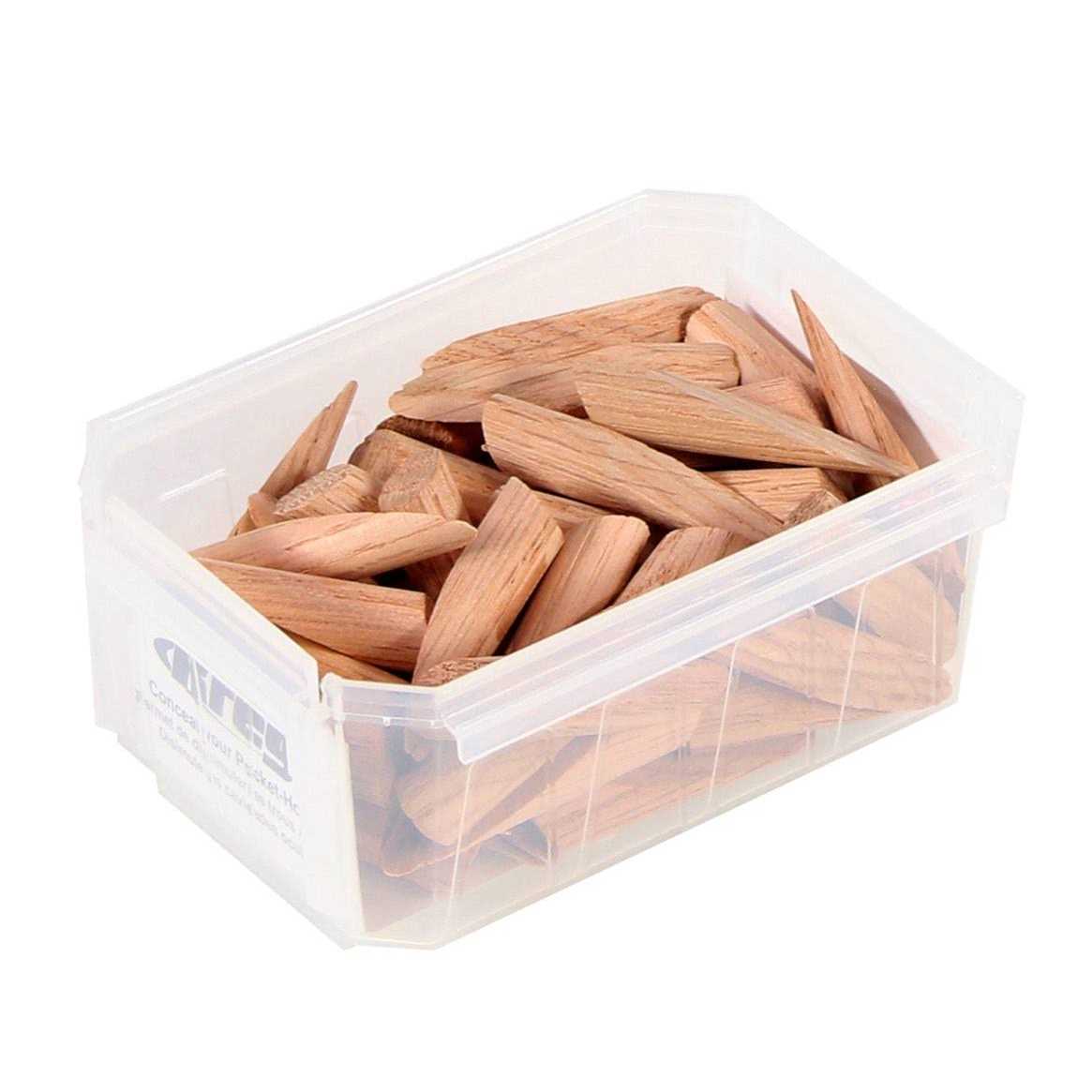 Most of the time pocket holes can be placed on the backside or underside of a project where they are hidden from view. From time to time, however, you may find the need to place one in a visible location. These wood plugs are pre-cut at the proper angle to fill and hide pocket holes. Just glue and sand flush.