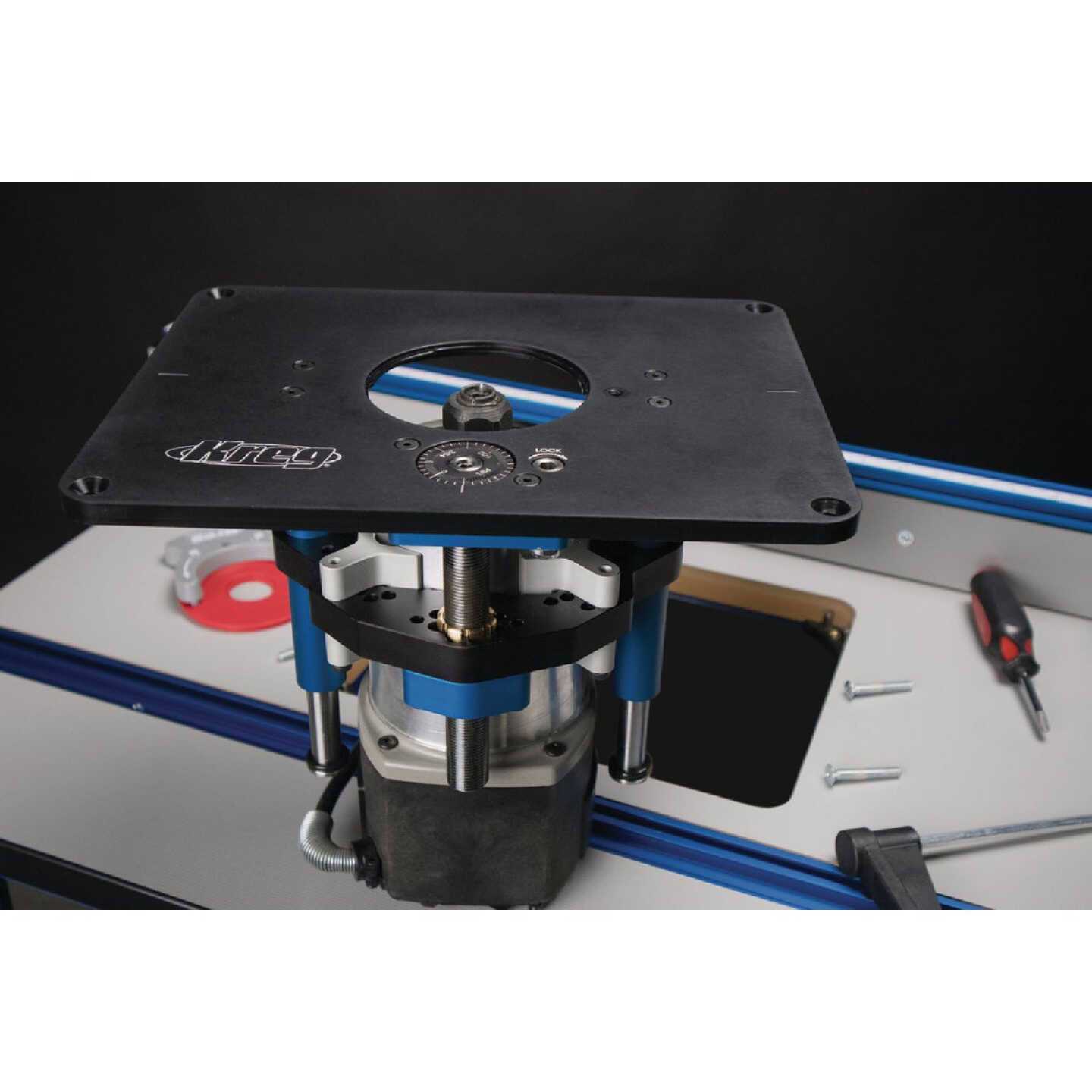 Take control of your table-mounted router for quick, accurate, reliable, and repeatable setups The Precision Router Lift helps you elevate your routing capabilities by providing precise control when making router setup changes or changing bits. The lift replaces the standard insert plate in a router table (the ⅜” x 9-¼” x 11-¾” plate fits all Kreg router tables plus many popular brands) and accepts 20+ popular router models—without the need for adapters or modifications—in a high-performance carriage that you raise and lower from above the table. With the Precision Router Lift, there’s no more reaching under the table to make adjustments or change bits, plus vastly improved control over all adjustments, large or small. Instead, simply use the lift’s included crank to adjust the height of your router bit easily and precisely from above the table. This makes adjustment fast, simple, and accurate so you can set up your router faster, and then dial in the exact bit height you require using the Precision Router Lift’s built-in micro-adjustment scale. The lift also simplifies changing bits by allowing you to do that from above the table. The Precision Router Lift is designed so that every full revolution of the adjusting crank moves the carriage—and your bit—exactly 1⁄16″, though adjustments down to thousandths of an inch are possible. A built-in micro-adjust scale can be zeroed out at any point to establish your baseline bit setup, so you can make exact bit height changes, and readjust to the exact same setting confidently every time for repeat cuts. Whether you’re upgrading an existing router table, setting up a new one, or building your own custom table, the Precision Router Lift is the perfect routing accessory. It offers the precision you demand to achieve exacting routing standards, along with the fast, easy performance you want in order to spend less time setting up and more time routing.