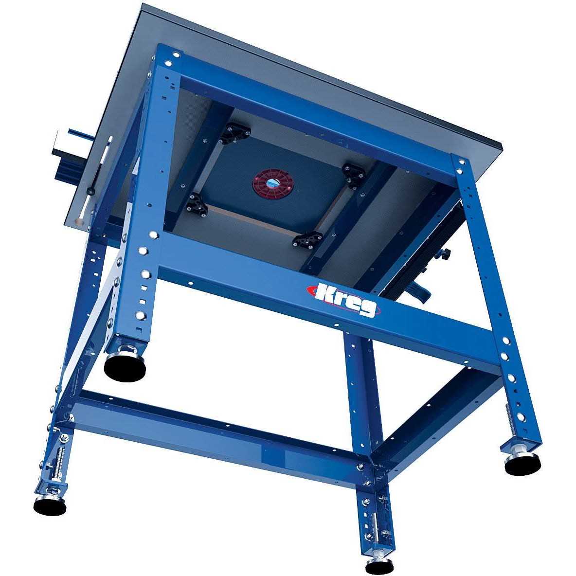 Kreg KRS1035 Router Table Stand Heavy 12- & 16-gauge steel construction Adjustable in height from 29 to 35 Inches (736mm-889mm) 20 x 28 Inches (508mm-711mm) steel stand footprint Includes (4) stable leveling feet, Easy assembly Durable powder-coated finish To make routing even easier, the table and fence sit atop a heavy-duty stand. Made from heavy-gauge steel, the stand can be adjusted from 29″ to 35″ high, and has levelers to compensate for uneven floors. Plus, the stand has predrilled holes that make it easy to mount accessories and to customize the stand.