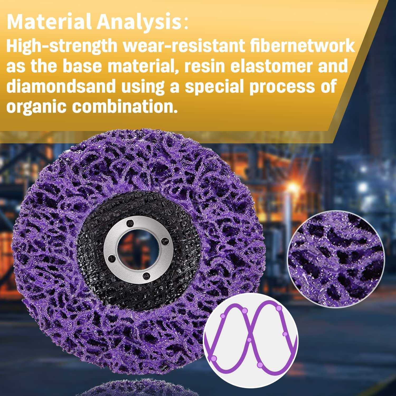 【*NOTICES】- Our poly strip disc wheels are design for 4-1/2″” with 7/8″” arbor striper of various models angle grinders in the market. DOES NOT FIT WAGNER PAINT EATER or DRILL. Please make sure the arbor size and the outer diameter are match with your grinder machine before you purchase. 【BLACK DIAMOND CUP WHEEL】- The black diamond material is a high-strength, high-wearing honeycomb soft abrasive tool formed by combining high-strength wear-resistant fiber mesh as substrate and organically combining resin elastomer and corundum with a special process. 【 PAINT REMOVAL DISC SIZE】- Diameter 4-1/2″”,Thickness 3/5″”,Aperture 7/8″”, Maximum speed 11500 (R.P.M), Maximum speed 80, Abrasive grain size – black silicon carbide 46# 【SCOPE OF APPLICATION】-Paint strip wheel applies for sanding interface grinding, oil pipe burr removal, ceramic bottom polishing c1/2ar surface paint removal and so on. Easy to strip discs clean & remove paint, rust and oxidation 【PREMIUM PERFORMANCE】-Paint strip disc does not damage the surface of the object, the grinding force is uniform, the processing effect is uniform and wear-resistant, the water resistance is strong, the plasticity is strong, the softness is good, it is suitable for various shapes to be peeled off by the grinding body, the grinding sound is small and the dust is small.”