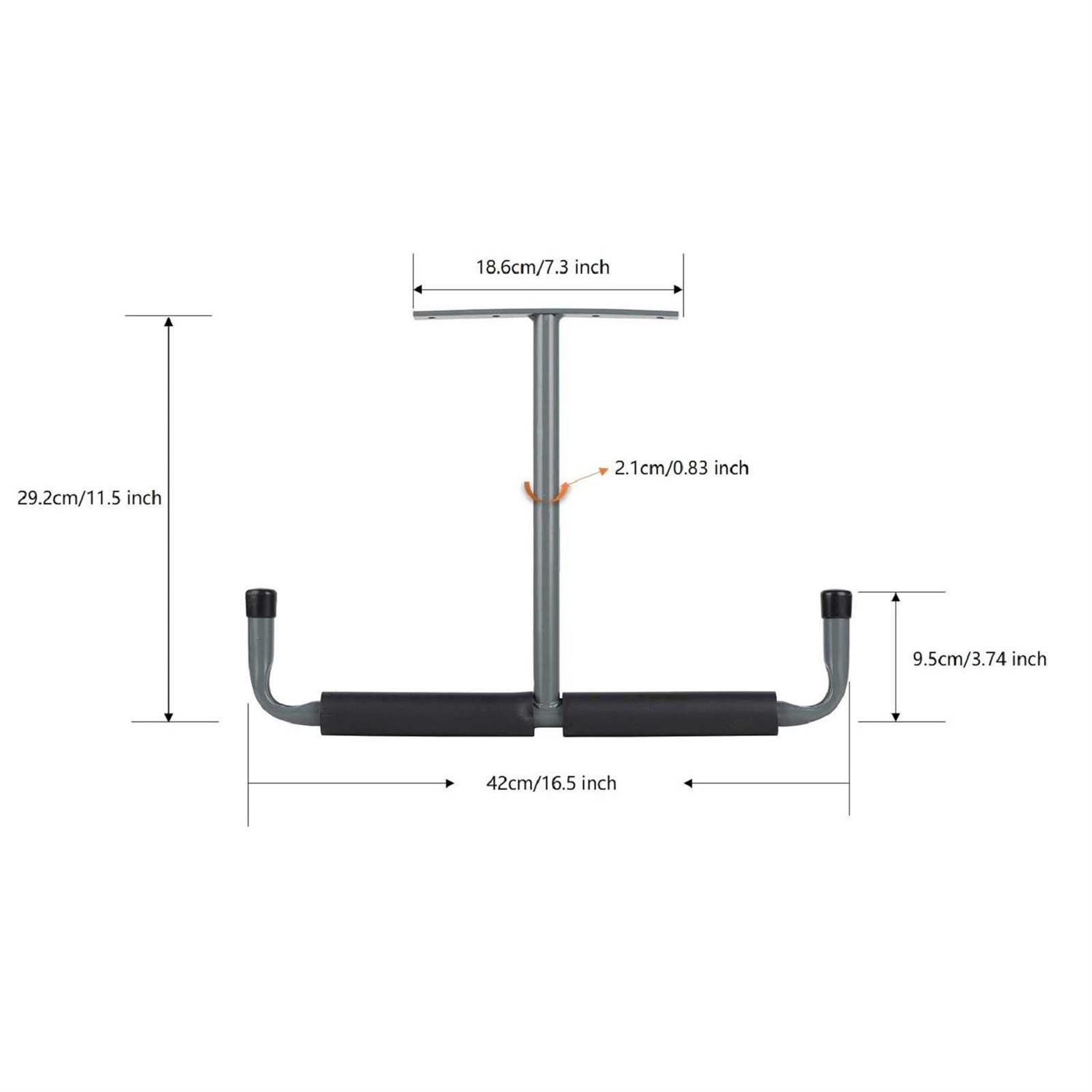 Describe Heavy Duty Overhead Garage Storage Hanger Dimensions: Length: 16.5 inch Height: 11.5 inch Steel Tube Diameter: 0.83 inch Application: This hooks are ideal for hanging ladders, wood, fishing rods, tools, bikes, garden hoses & other bulky items to provide convenient overhead storage Mounts to ceiling beams and rafters,make more space in the garage sheds workshops & loftspaces by storaging equipment from the ceiling or wall This product is highly durable, easy to use