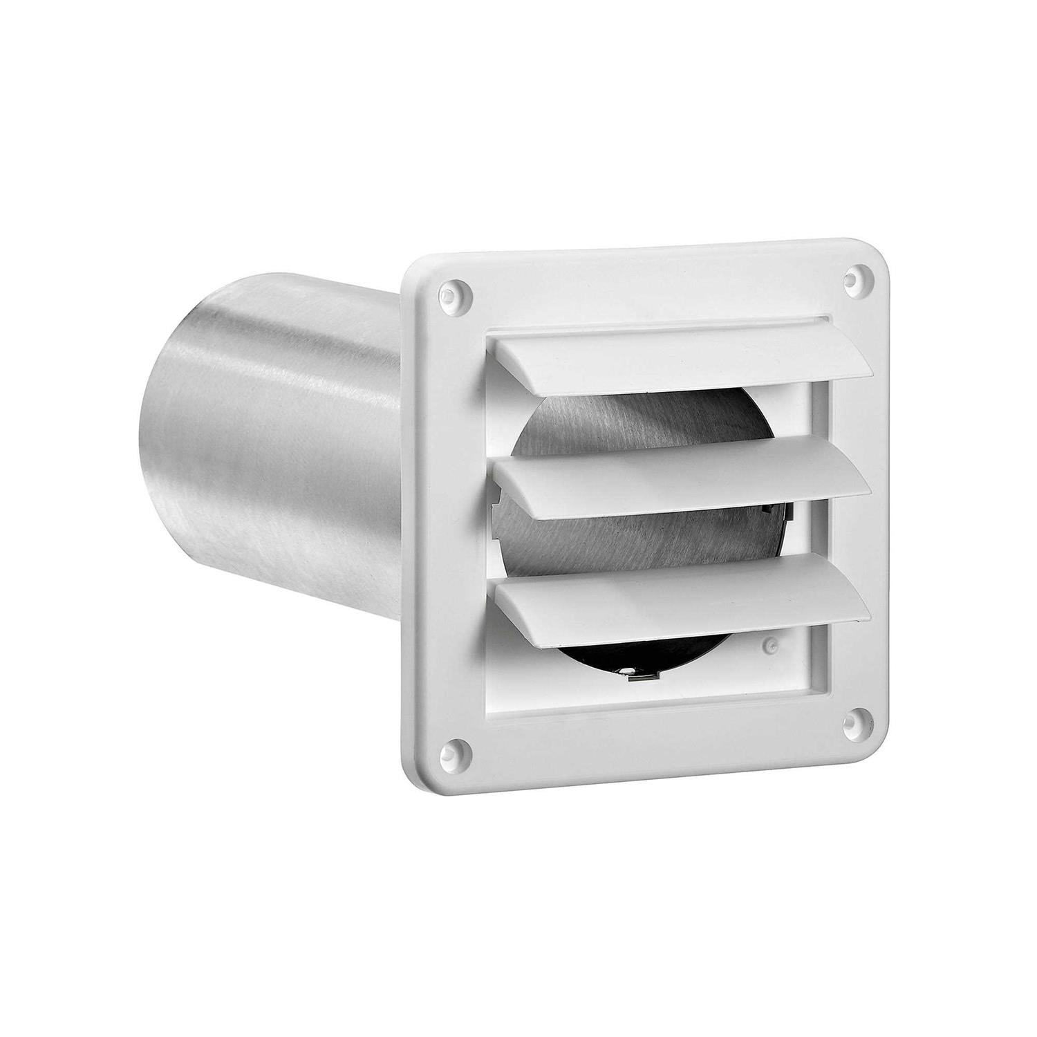 This vent is used for clothes dryer exhaust, bath fan exhaust and other general venting applications. The built in flaps prevent back drafts and prevents critters from entering the home through the vent. The plastic vent has a UV additive to prevent premature fading due to the sun.