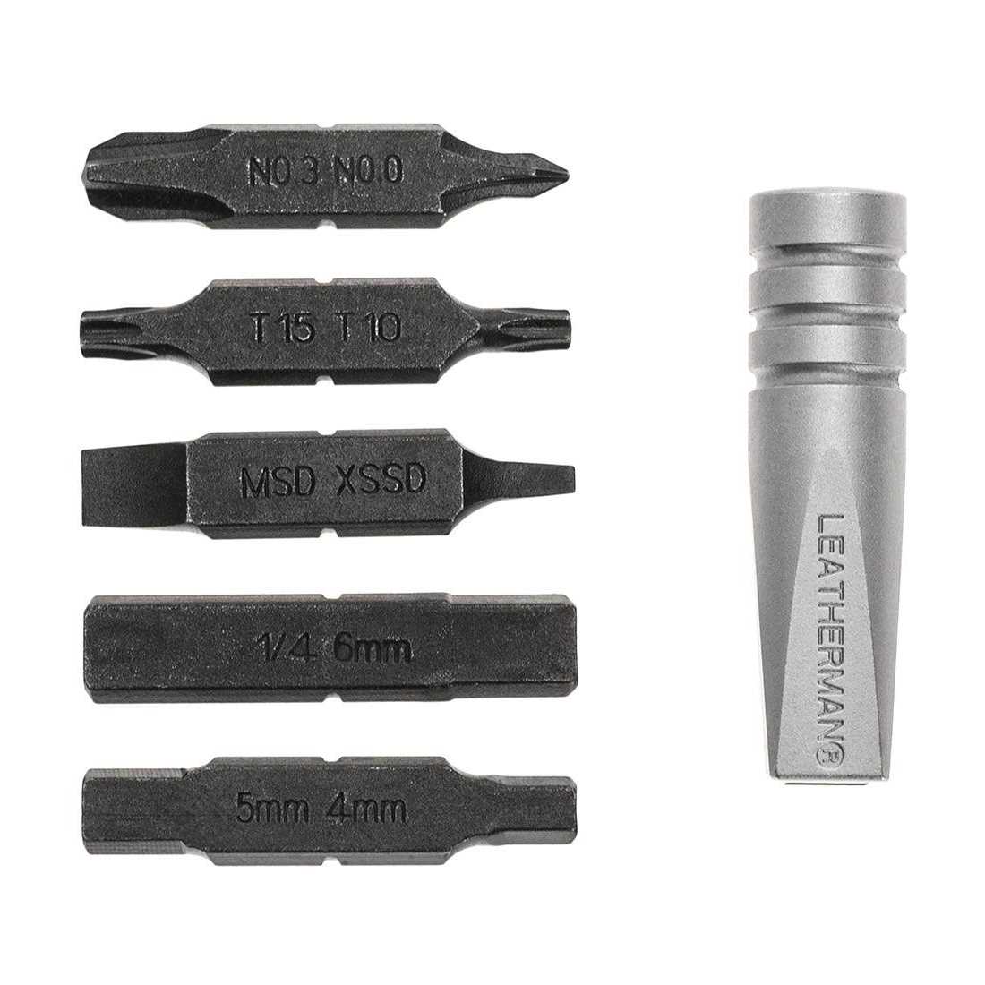 Add ten tools to your favourite Leatherman tool with the Removable Bit Driver. The set comes with a driver and five double-ended tool steel bits. The extender also works with regular 1/4” hex bits, and the handy holder will also store standard hex bits – giving you extra functionality for your favourite hobby.