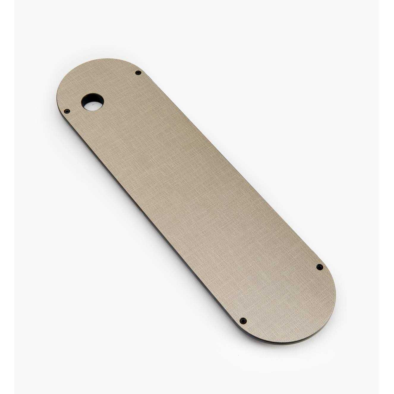 Leecraft phenolic table saw inserts reduce splintering and chip-out on the bottom side of regular or dado table saw cuts. The opening in the insert is cut on the table saw to the exact width of the saw blade’s kerf. The matching kerf prevents thin slices of wood from jamming in between the blade and the throat plate during a cut. It also reduces the amount of tear-out that can happen with a standard insert.