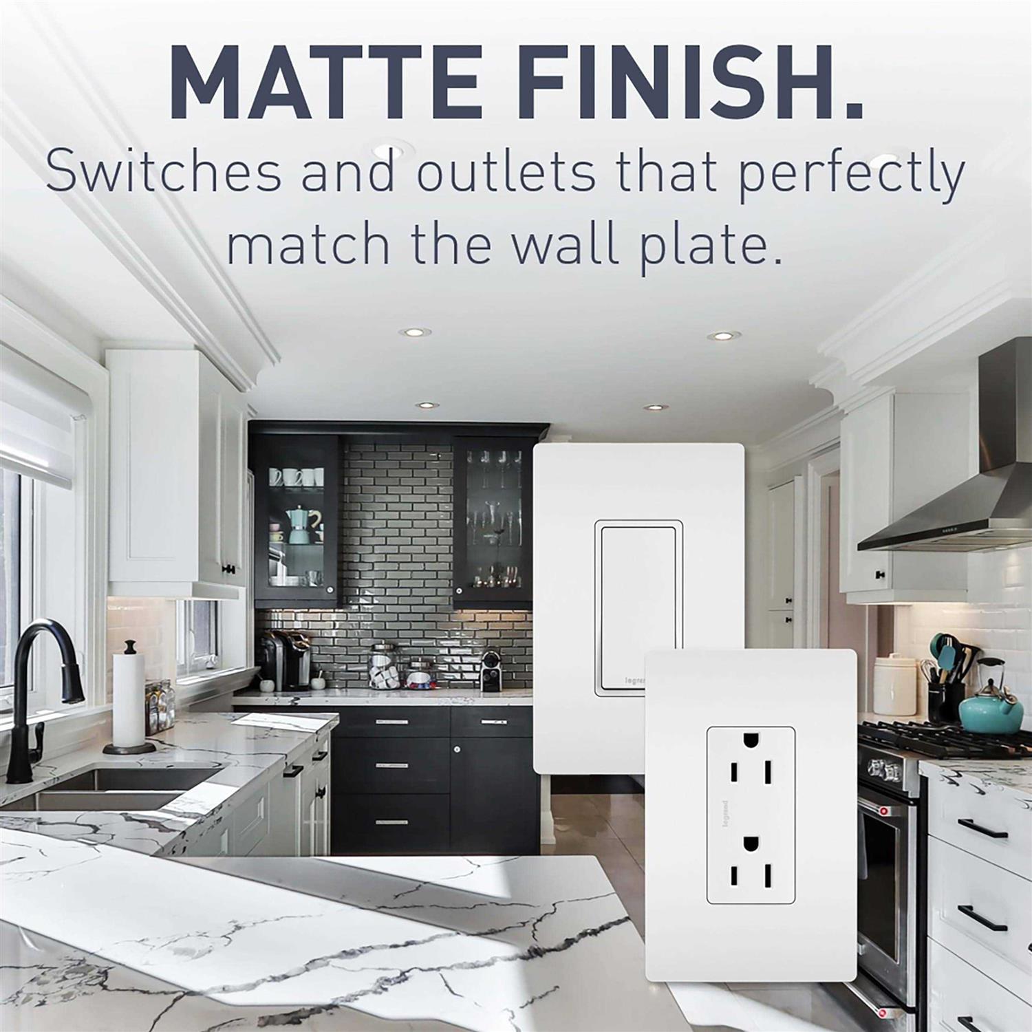 The radiant collection is a step up from the standard with simple, classic options in wiring devices, home automation controls and screwless wall plates that complement today’s homes. The self-test GFCI conducts an automatic test every 3-seconds, ensuring it’s always ready to protect. If the device fails the test, the indicator light flashes to signal that the GFCI should be replaced. It also has our proven SafeLock Protection feature: if critical components are damaged and protection is lost, power to the receptacle is disconnected. Designed to complement your decor, radiant layers on the style with tasteful finish options to coordinate with any style. Color: White.