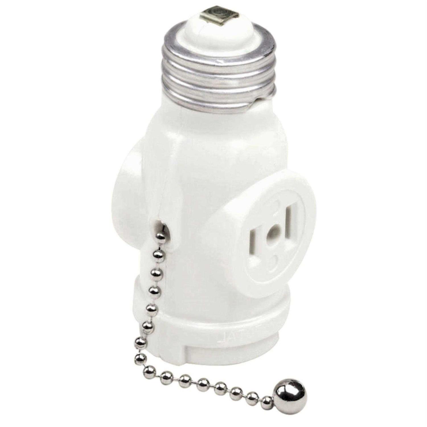 Leviton 660 Watt White Pull Chain Socket & Outlet Adapter