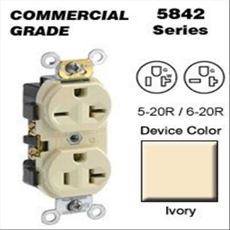Leviton 5-20r_6-20r Duplex Receptacle Commercial – Ivory 5842-I