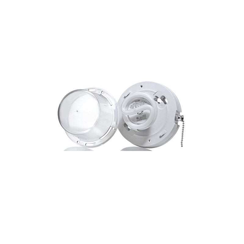 Leviton LED Ceiling Lamp Holders are an energy-efficient alternative to incandescent or halogen fixtures and meet NFPA 70, NEC Section 410.16 requirements. Designed to reduce the risk of fire in closets, they are also ideal in garages, basements, utility rooms and attics. They work with a pull chain to turn the light on and off and are easy to install with pigtail leads and knockout holes for multiple box configurations. Energy Star Compliant.