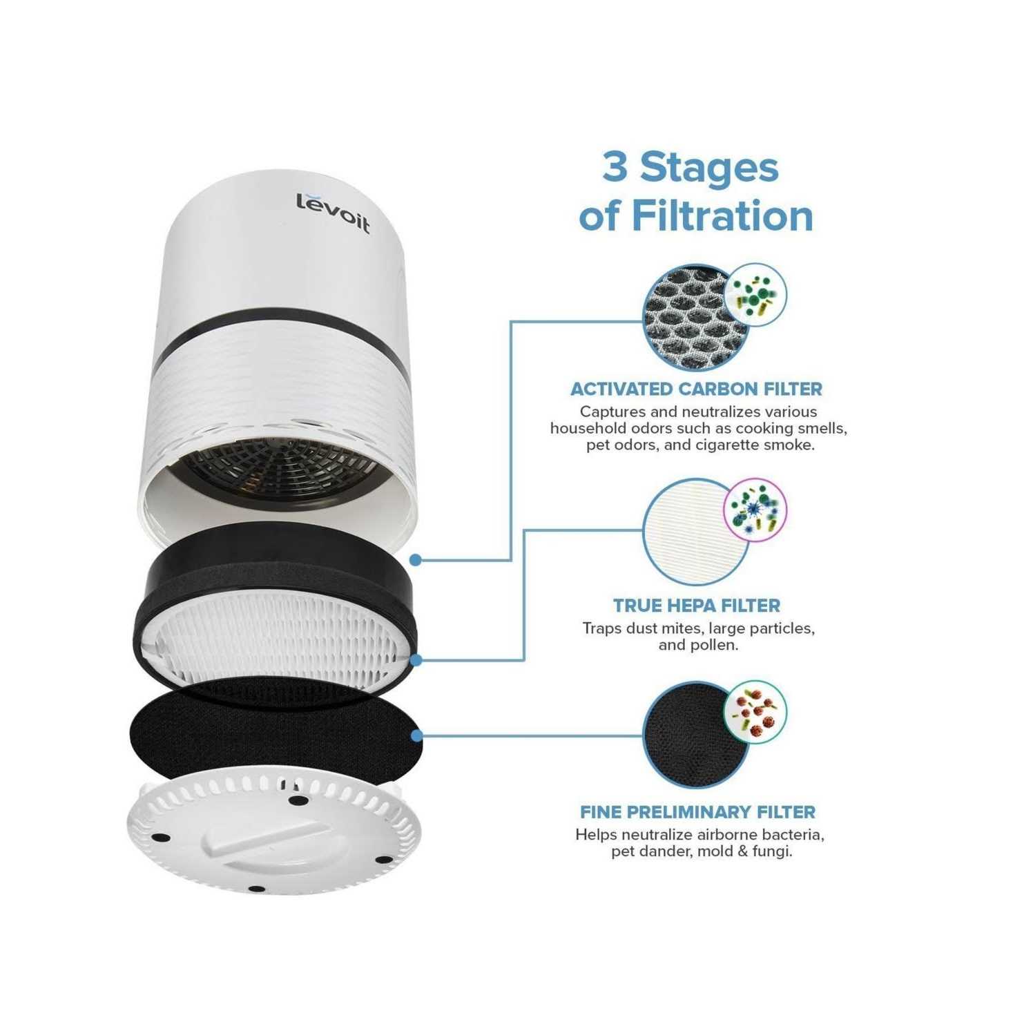 GENUINE Replacement Triple Stage air filter works with the Levoit LV-H132 Small Room Air Purifier. Buy with confidence from the manufacturer. This filter does triple the work to clear the air in your small room. This genuine Levoit LV-H132 Air Purifier Filter employs a three-stage filtration including Fine Preliminary, True HEPA and Activated Carbon filters to remove 99.97% of dust, allergens, bacteria and odors Easy, efficient, refreshing! Replacement is quick and easy! Simply rotate the filter cover off, remove any existing filters, clean out any particles inside, then place the new filter in (after removing it from its packaging). Make sure the tabs are facing outward. Secure the lid until the arrows on either side align Replace the filter every 6 months to optimize its performance. After all, it’s been accumulating odors, particles, allergens, mold spores, etc.