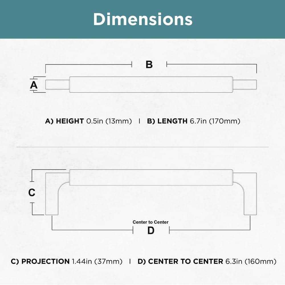- 6-5/16 in. (160 mm) center to center screw mounting, rear-mount installation.