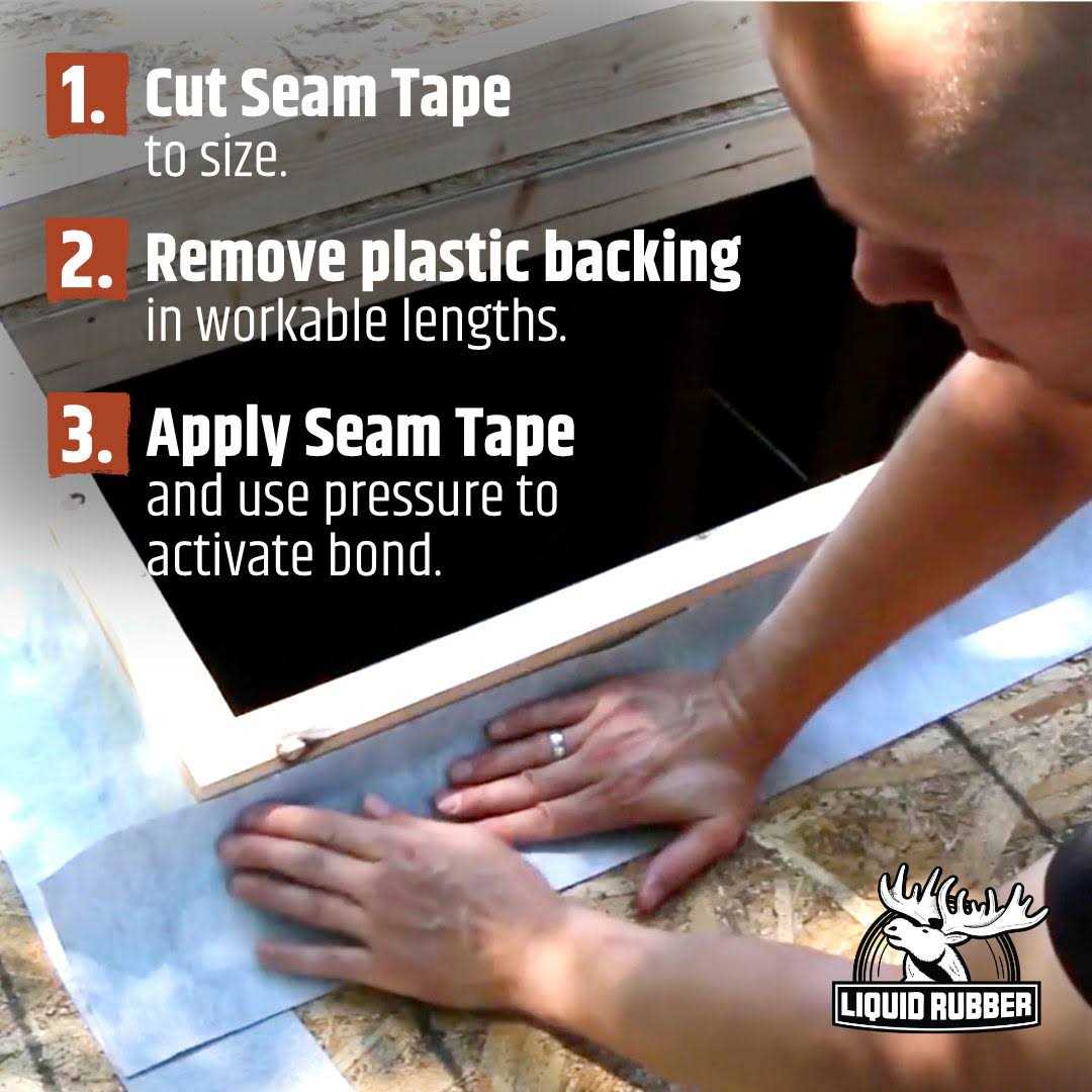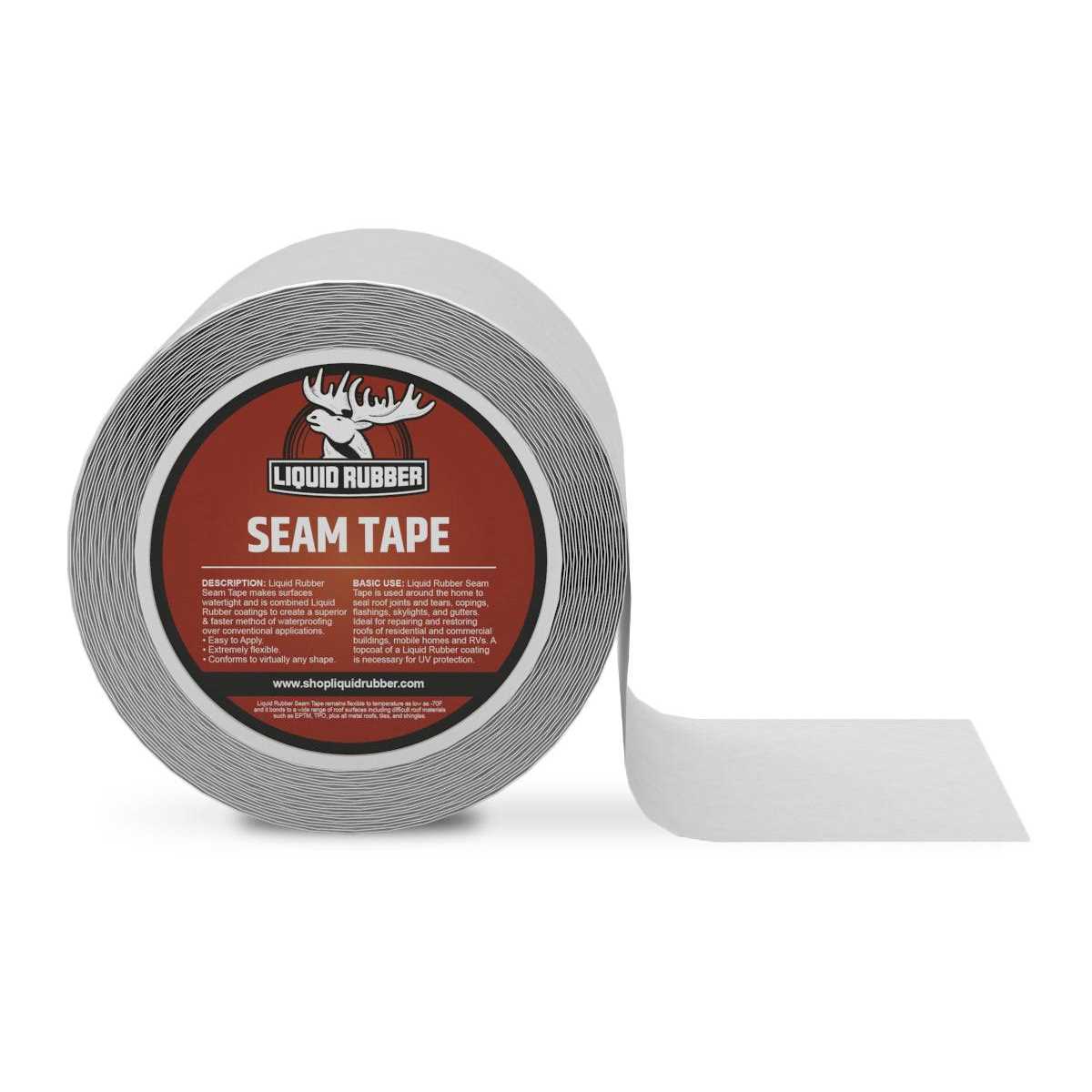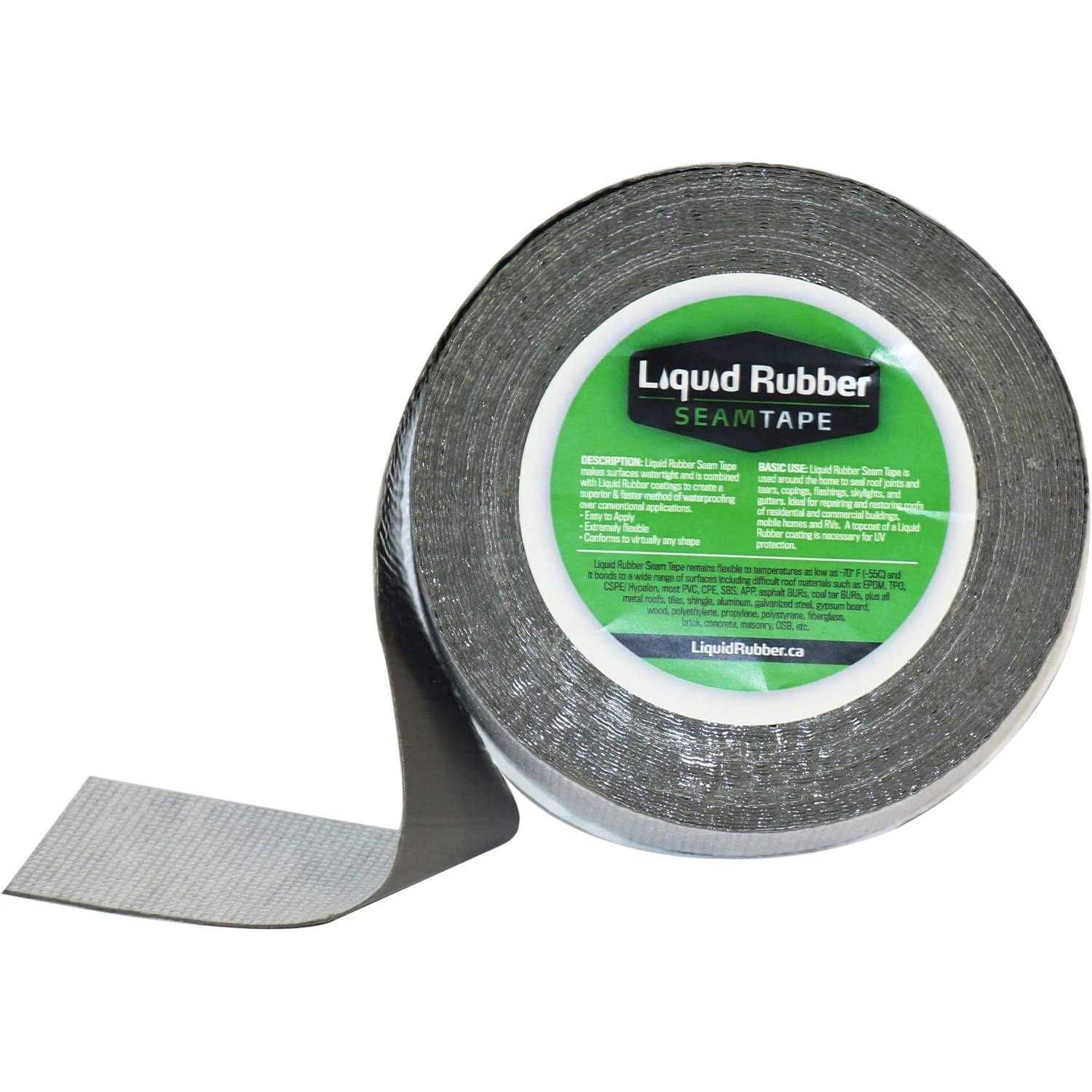 Liquid Rubber seam tape This product is used to seal roof joints (seams) and tears, copings; flashings, skylights; gutters, etc. Perfect for repairing and restoring roofs of residential and commercial b Bonds to a wide range of surfaces including difficult roof materials Paintable Seam Tape is used as part of the waterproof system with Liquid Rubber Coatings.