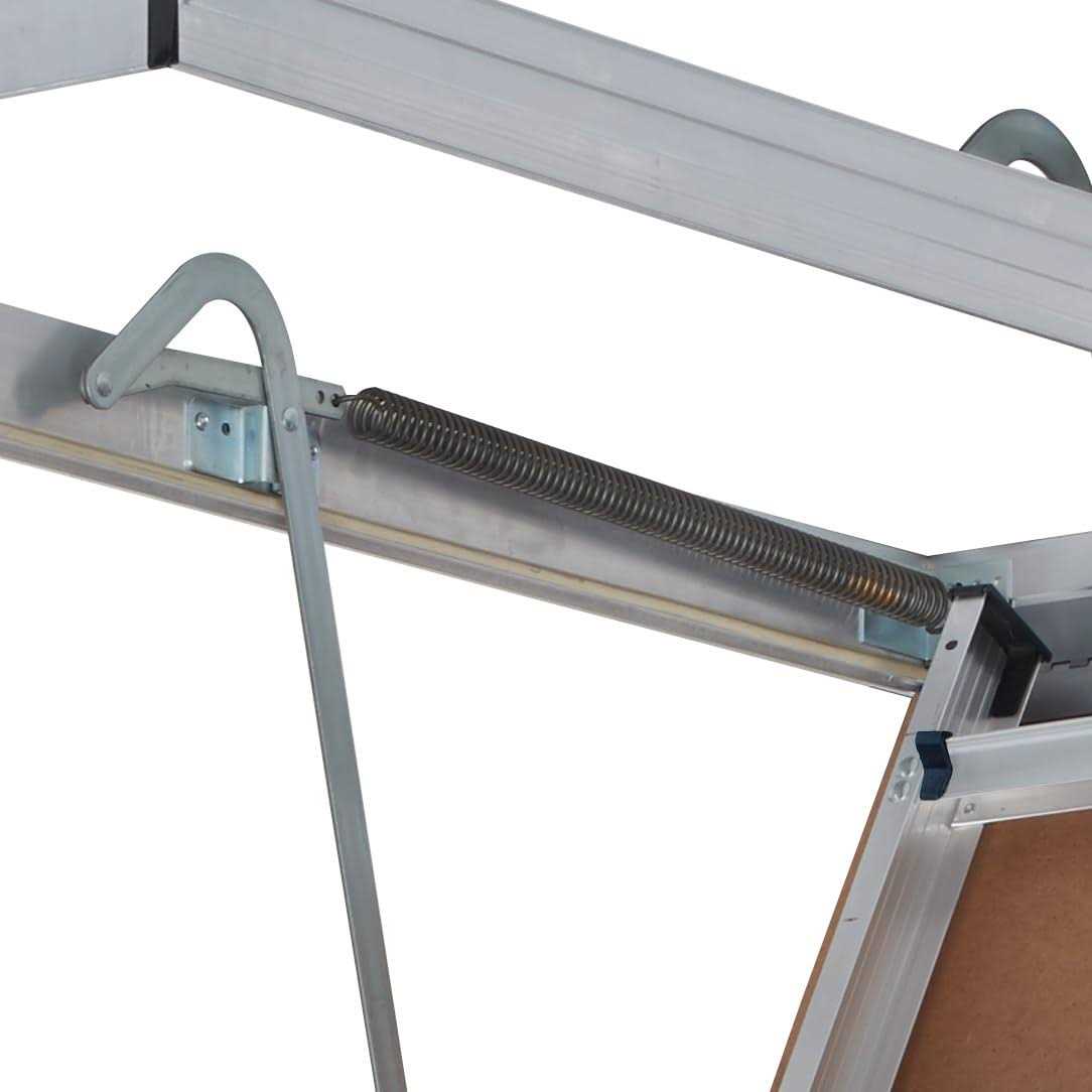 About this item Material Aluminum Brand LITE Product Dimensions 56″W x 22″H Color Natural Special Feature Lightweight TOUGH AS NAILS: Its sturdy aluminum frame makes this ladder tough as nails ROUGH OPENING DIMENSIONS: 22½” x 54″ CEILING HEIGHT: Fits 7-foot 9-inches to 10-foot 3-inches ceilings. STURDY AND SAFE: Able to hold up to 375 pounds. Heavy-duty hinges not only help the ladder unfold smoothly, but they also keep it from wobbling dangerously as you climb CUSTOMIZABLE ELEGANCE: Elegant and smooth finish with adjustable spring tension; Ceiling Height Maximum (ft): 10.25