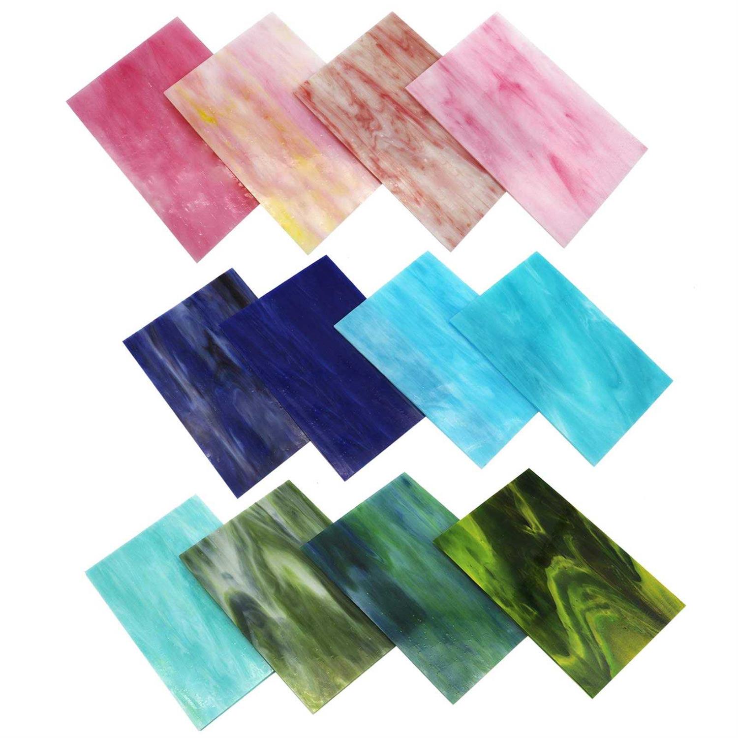 Glass Sheets by LITMIND. Details: Assorted and mixing colors with variety pack to make your creative ideas fly. By category, like Cathedral Glass, Streaky Glass, Victorian Mottle, Opal Granite, Aqualite, Wispy stained glass, etc. No more hesitation! Try it now! PRODUCT INFORMATION:-Total 12 classic stained glass sheets -Size: 6” x 4” each sheet (approx. 1/8” thickness)-Securely packed with foam padding all around, top/front/sides/back-Foam layer between all glass sheetsNOTES: The edges of the stained glass are sharp, so care must be used in cutting, handling and grouting.