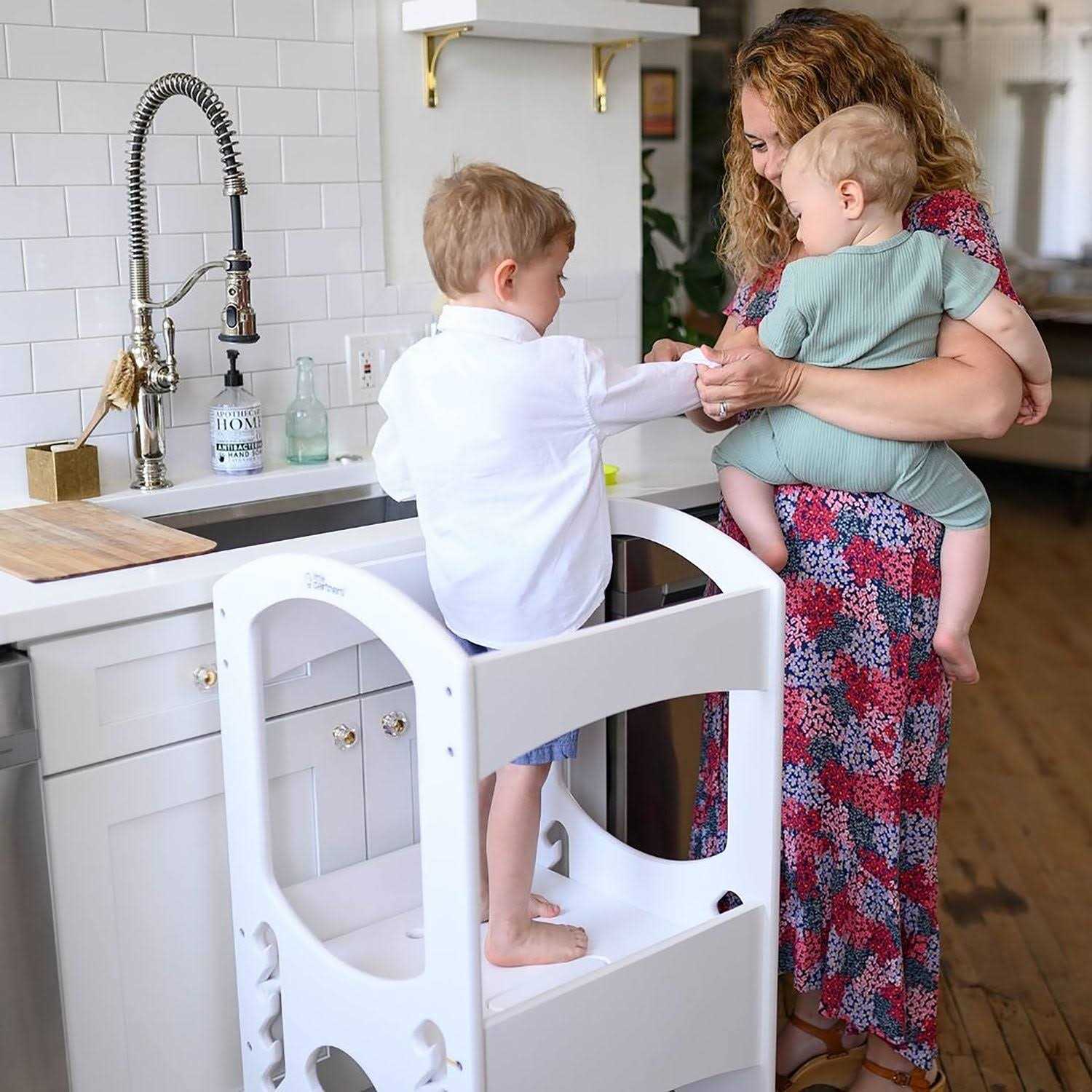 • Adjustable Height – Children can climb up to counter height to learn and explore alongside parents