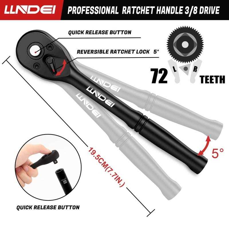 METRIC & STANDARD SOCKET SET: LLNDEI 3/8-inch Impact socket set includes both metric and standard sizes and 1/4-inch bits and full complement of extensions and to fit any and all measurements you encounter on the job or home repair! HEAVY-DUTY 3/8″ IMPACT SOCKETS: Each black socket and socket extension in this master kit is constructed with high-impact drop-forged premium chrome vanadium steel. The sturdy and professional chrome vanadium construction allows you to take on any project, large or small. 6-POINT HEX DESIGN: The 6-point hex socket design prevents round off on fasteners under high torque exertion from an impact gun or electric wrench output. The included socket set case holds each socket for easy transport and storage. LASER ETCHED SIZES: LLNDEI impact sockets are each individually identifiable with high-contrast laser etched markings for the easy identification of sizes to keep you working at home or the garage on your car or vehicle. This design allows for fast application, efficiency, and accuracy in any work space. SERVICE GUARANTEE: All LLNDEI sockets are rigorously tested, ensuring peak performance and durability. LLNDEI Tools meet or exceed ANSI and DIN performance standards.