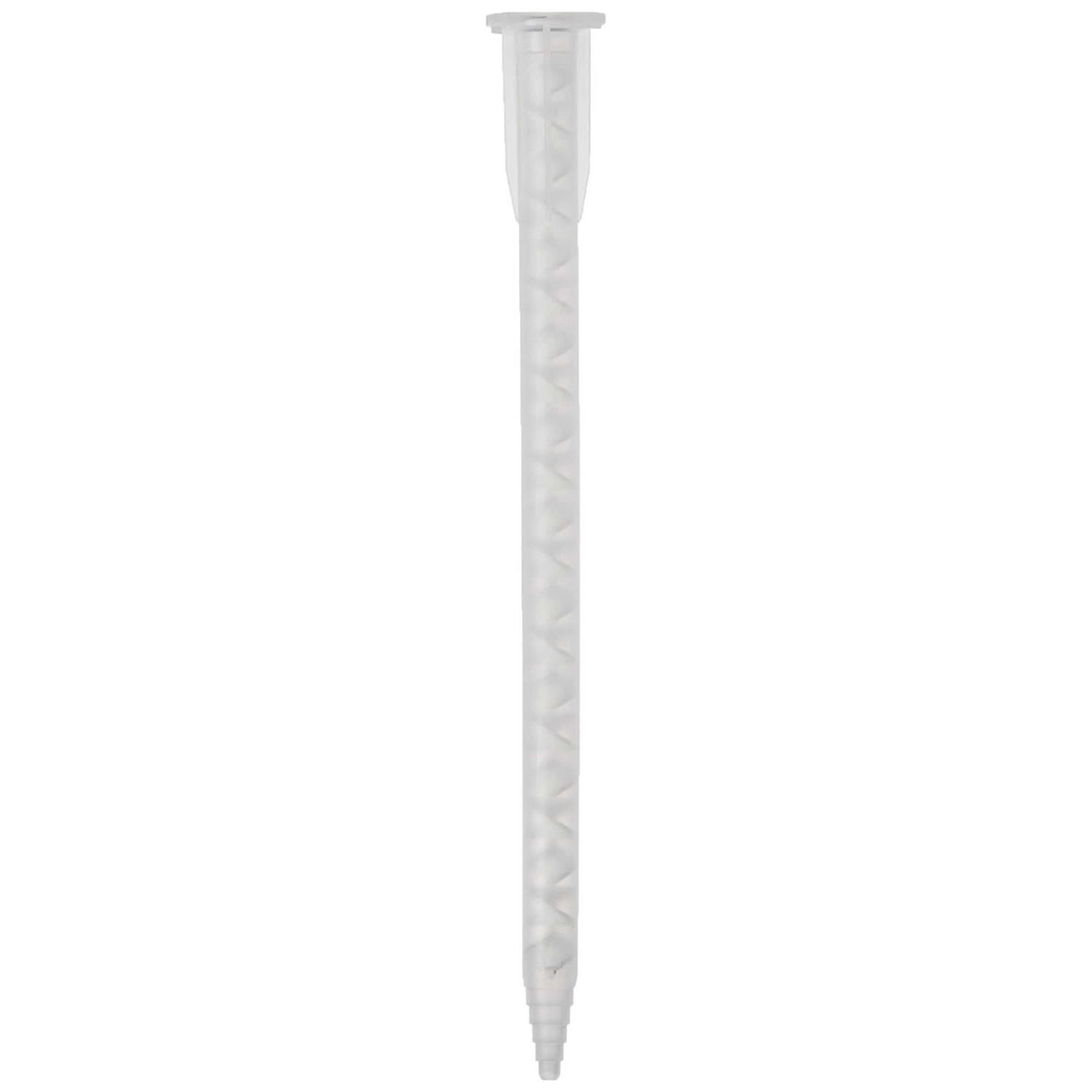This A Style mixing nozzle is white. This mixing nozzle features 6.3 mm diameter and includes stepped tip. In addition, it is for use with a style cartridges, all hysol 50 ml cartridges.