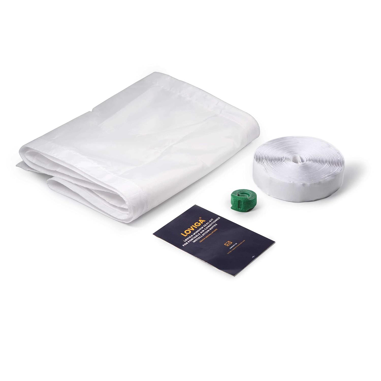 ️【Adjustable Universal Size】LOVIGA Portable AC Window Seal Kit are available in 25*62~92cm/25*102~162cm two sizes, both sizes are able to adjust the length according to the actual needs, matching all portable air conditioners and air dryers, suitable for home horizontal or vertical sliding windows (single-hung and double-hung). ️ 【Better Sealing】Replacing the old zipper design with a drawstring to allow the sealing fabric to better fit size from 1~6 Inch exhaust pipe, this newly designed AC Vent Kit has an excellent sealing effect of true “0” gap, firmly lock the indoor cool air while also prevent outdoor heat flowing back, keep out rain, mosquitoes bugs etc. Special waterproof TU fabric with heat-insulating whitening process reflects the sun’s rays efficiently, fast cooling, real energy-saving and money-saving. ️ 【More Reliable Design】This Air Conditioner Window Vent Kit is specially designed to solve the problems of zipper type whose sealing is lacking, zipper bursting and easy to slip off, and complicated installation. Simplify the design and structurer while improving the reliability of the product. 【Easier Installation】 1. open the sliding window about 20cm and put the tape on the window frame 2. put the portable ac window seal along the tape 3. stick the exhaust pipe out of the round hole 4. tighten the cord lock closure and further fix the pipe with the included Velcro ties to complete the installation, no drilling holes, super simple. ️ Clean off the dust at the window frame before applying the adhesive. 2. It is best to leave it for 24 hours after installation before use.