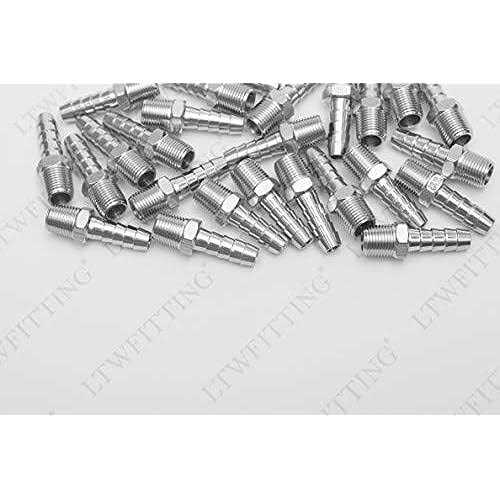 LTWFITTING Bar Production Stainless Steel 316 Barb Fitting Coupler / Connector 1/4″ Hose ID x 1/8″ male NPT Air Fuel Water(Pack of 5)