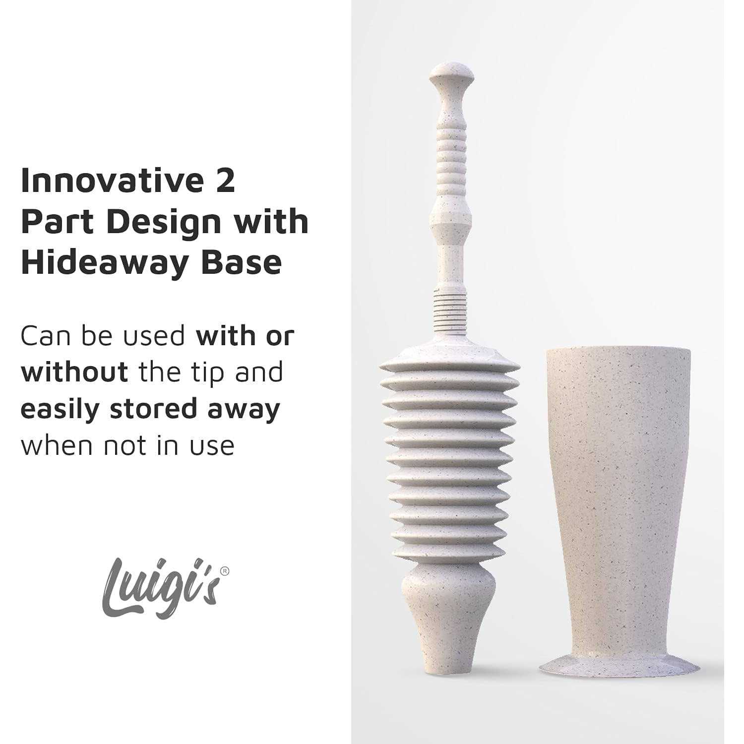 Luigi’s Toilet Plunger with Caddy – Heavy Duty, Double THRUST, Powerful Pump – Bellow Design for Max Force – for Low Flow, Elongated & Square Bottom
