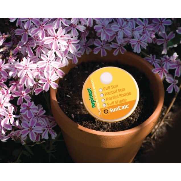 Sunlight calculator. Accurately measures the amount of accumulated light that falls on a gardener’s specific location of their property. Providing you with the ability to match a plant’s light requirements. Actual light conditions as measured by SunCalc. Product Type: Soil Testing. Overall Product Weight: 2 lbs.