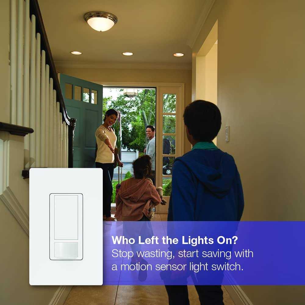 - Motion sensor switch automatically turns the lights on when you enter the room and off when you leave