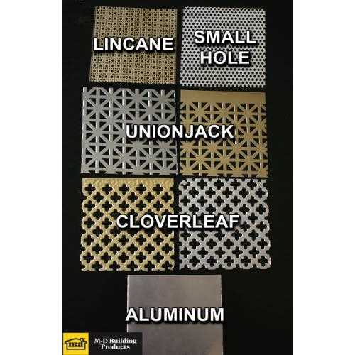 Easy to cut, form and fabricate. Aluminum material will not rust or corrode. Perforated, decorative design is great for door and window security, plumbing, heating and ventilation projects, radiator heater enclosures, craft and hobby projects, room dividers, cabinet ventilation and more. Recommended for indoor or outdoor uses.