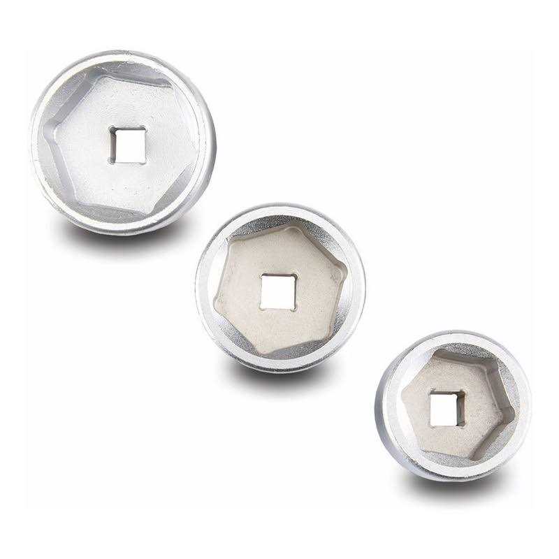 The 3 piece oil filter socket set fits many of the most common cartridge style oil and fuel filters including GM, VW and BMW.