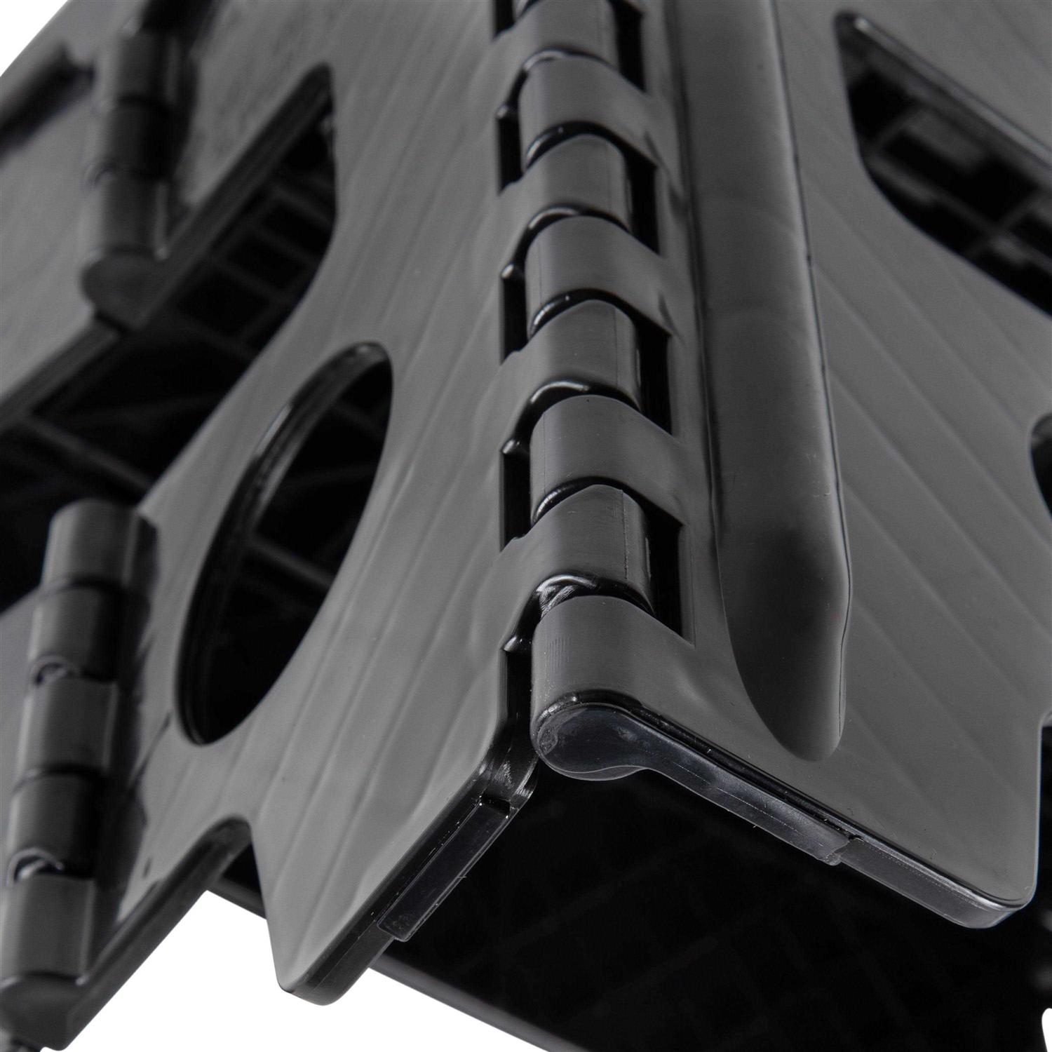 Introducing the Mainstays Black Folding Step Stool! Whose idea was it to put cabinets above the refrigerator anyway? Is there anyone that can get to that space without standing on a chair? Now you can relieve your dining chairs of additional tasks with this small folding step stool. At 13 inches high, extend your reach so you can get what you need from an upper cabinet or a high shelf in the pantry. Though small, it supports up to 300 pounds and collapses down to an even smaller, even easier to stash 1.75-inch slim profile.