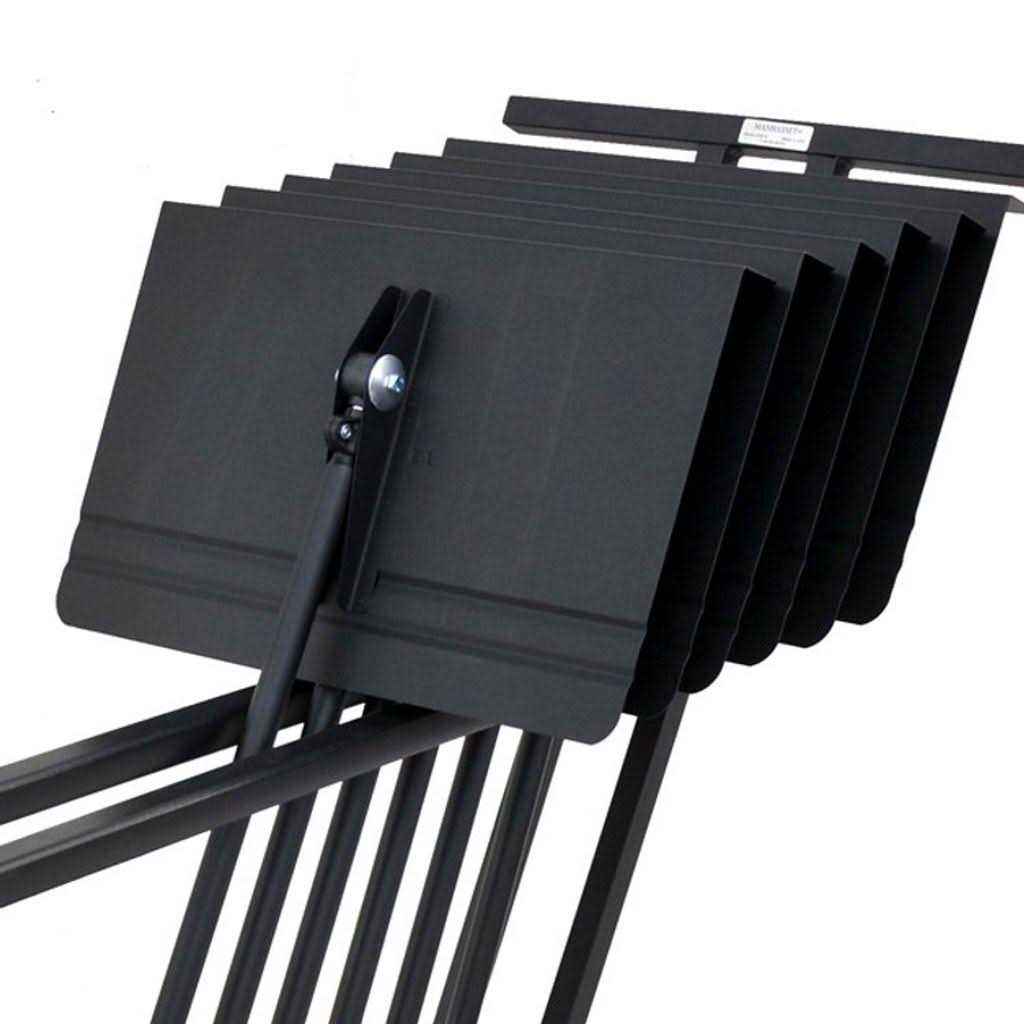 Manhasset 1910 Stand Cart, Holds 25 Music Stands, Black Finish. This unit is built to allow easy racking and removal of music stands and provides convenient storage. It is made to strict high-quality standards, and with its strong welded steel construction, durable powder-coat finish, high-density polyethylene rail liners wheels, it will provide service for years to come. It comes packaged with all the nuts and bolts necessary to easily assemble in minutes. Tts pivot centre axle allows it to maneuver easily on all floor surfaces.