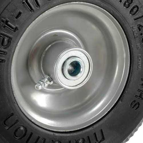 - 2.80/2.50-4″ (8.5″ diameter) with a 3″ centered hub and 1/2″ ball bearings.