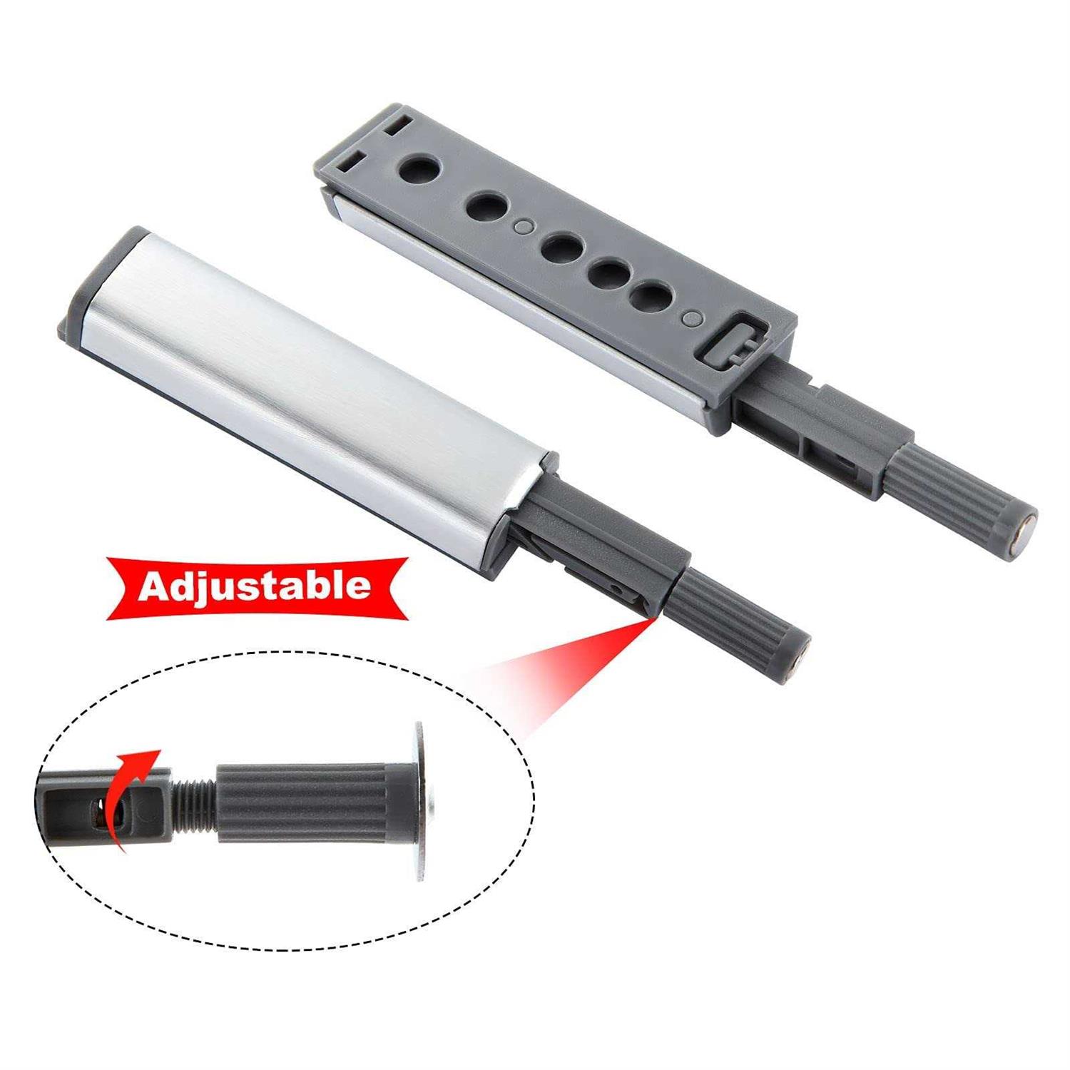 Latches by MARNER. Details:Magnetic push to release cabinet catches, creating the clean & seamless look of no knobs, that make kitchens, bedroom and living room look spacious, tidy and fashion. Features for Push Latches: – Effortless opening of cabinet doors and drawers, you can open and close your door just by pushing, don’t need pulls any more. – Heavy duty spring mechanism to ensure over 100,000 times open and close. – Adjustable long stroke, make your installation more easy. – Easy installation by adhesive or screws. – Durable and long lasting use. Specification for Push To Open Door Latch : Product Name: Magnetic push latches Material: Aluminum alloy, ABS Push Latch Size: 93x 45x 12 mm 3.66x 1.77x 0.
