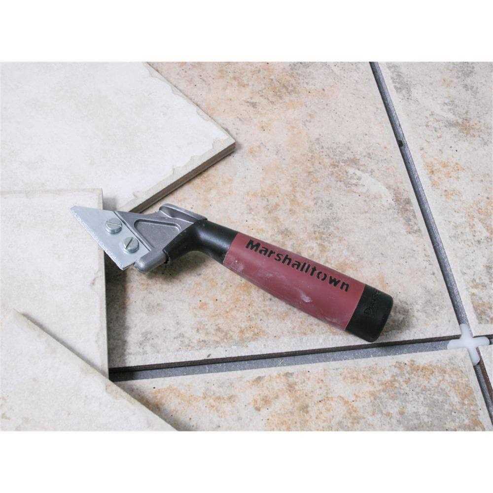 The Marshalltown Grout Saw has a blade coated with tungsten carbide that is perfect for removing grout. The Grout Saw comes with a DuraSoft handle with a finger guard to reduce fatigue and has a die-cast aluminum mounting with thumb rest. Replaceable blade is coated with tungsten carbide abrasive.