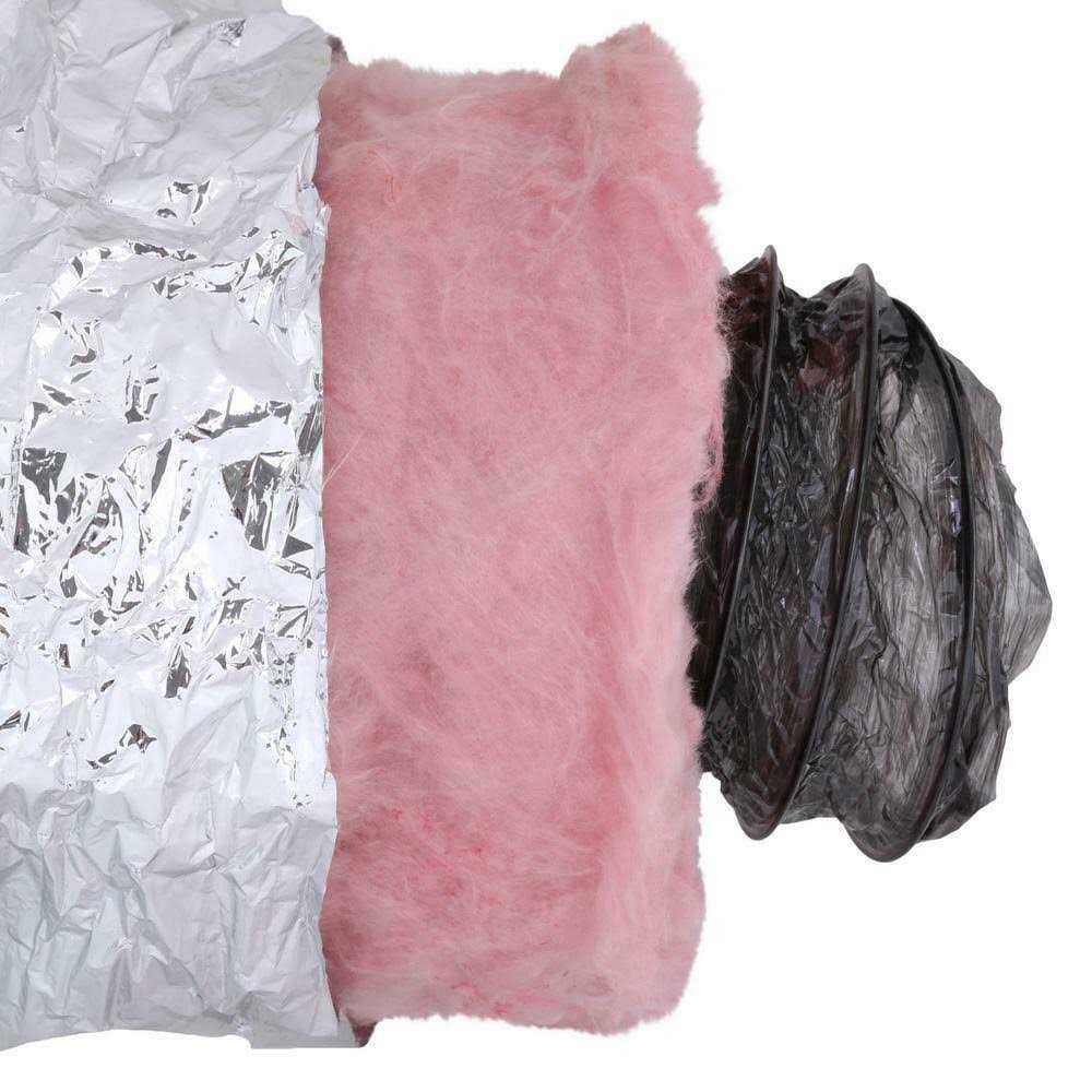 Metalized jacket, single strand fiberglass yarns for added strength and tear resistance. 2 in thick glass fiber. Two-ply continuous inner core products, smooth interior for more efficient air movement. Two-ply continuous inner core products, smooth interior for more efficient air movement. Vapor barrier, durable and scuff-resistant jacket. Zinc-coated, high-carbon steel wire helix. Thick, continuous blanket of glass fiber insulation. Metalized single-strand fiberglass yarns for added strength and tear-resistance.