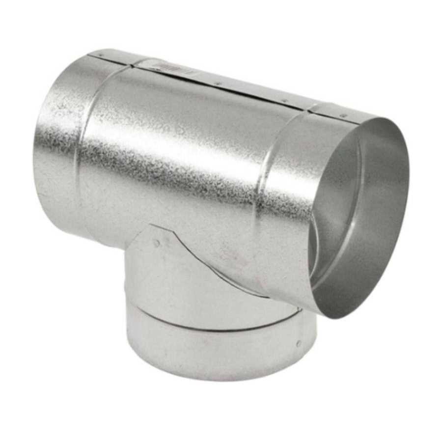 Round Tee is made of sturdy, galvanized steel and helps you branch a main line or a branch line with a 90° angle. It’s ideal for use with kitchen and bath fans. 90 degree tapered branch line distributes the air to another room Galvanized steel design prevents corrosion Ideal to use with bathroom and kitchen vents Galvanized-steel construction Sturdy, metal tee is ideal for venting bath and kitchen fans as well as heating and air-conditioning applications Branches a main line or branch line with a tapered, 90° angle Installs with sheet-metal screws Add a reducer after the branch to help ensure proper air velocity Insulate ductwork for system efficiency and comfort Seal seams with code-approved mastic, sealant or duct tape (not included) Master Flow, 6 in. Round Tee, T6X6X6 This Master Flow Round Tee is made of sturdy, galvanized steel and helps you branch a main line or a branch line. Installs with sheet-metal screws.