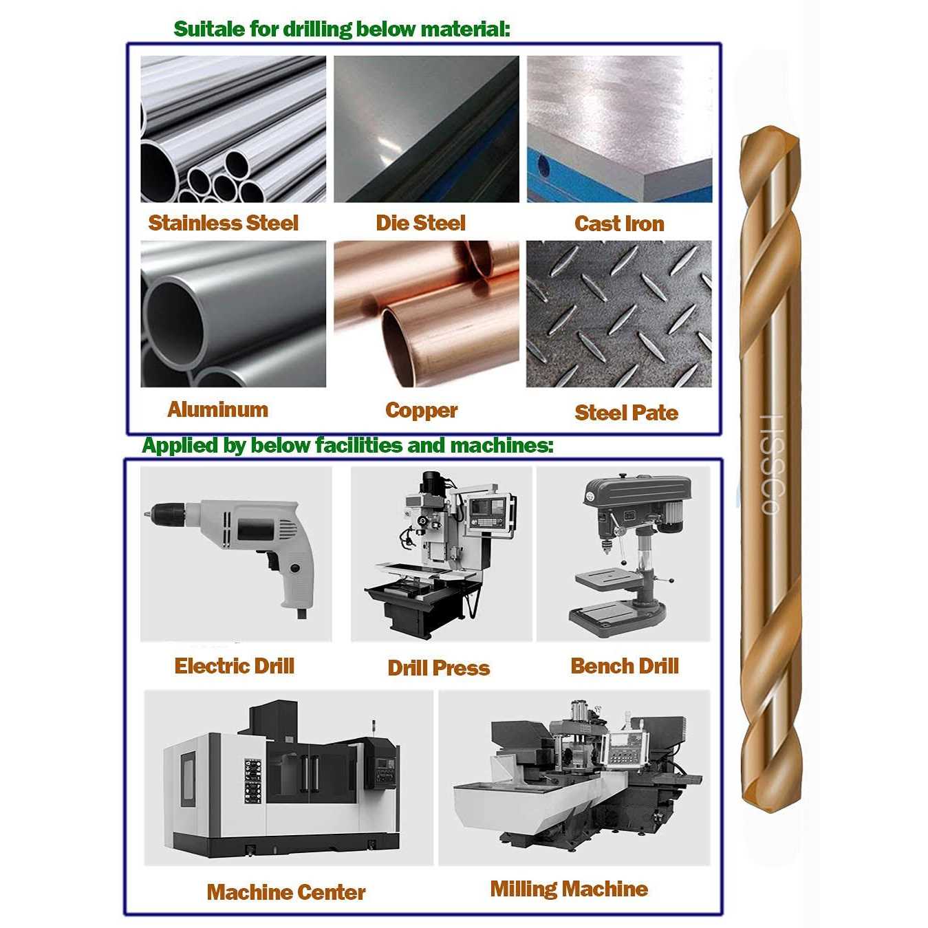 - ✔️【MATERIAL】: HSS Cobalt Material is the best hardened material for drilling longest life.