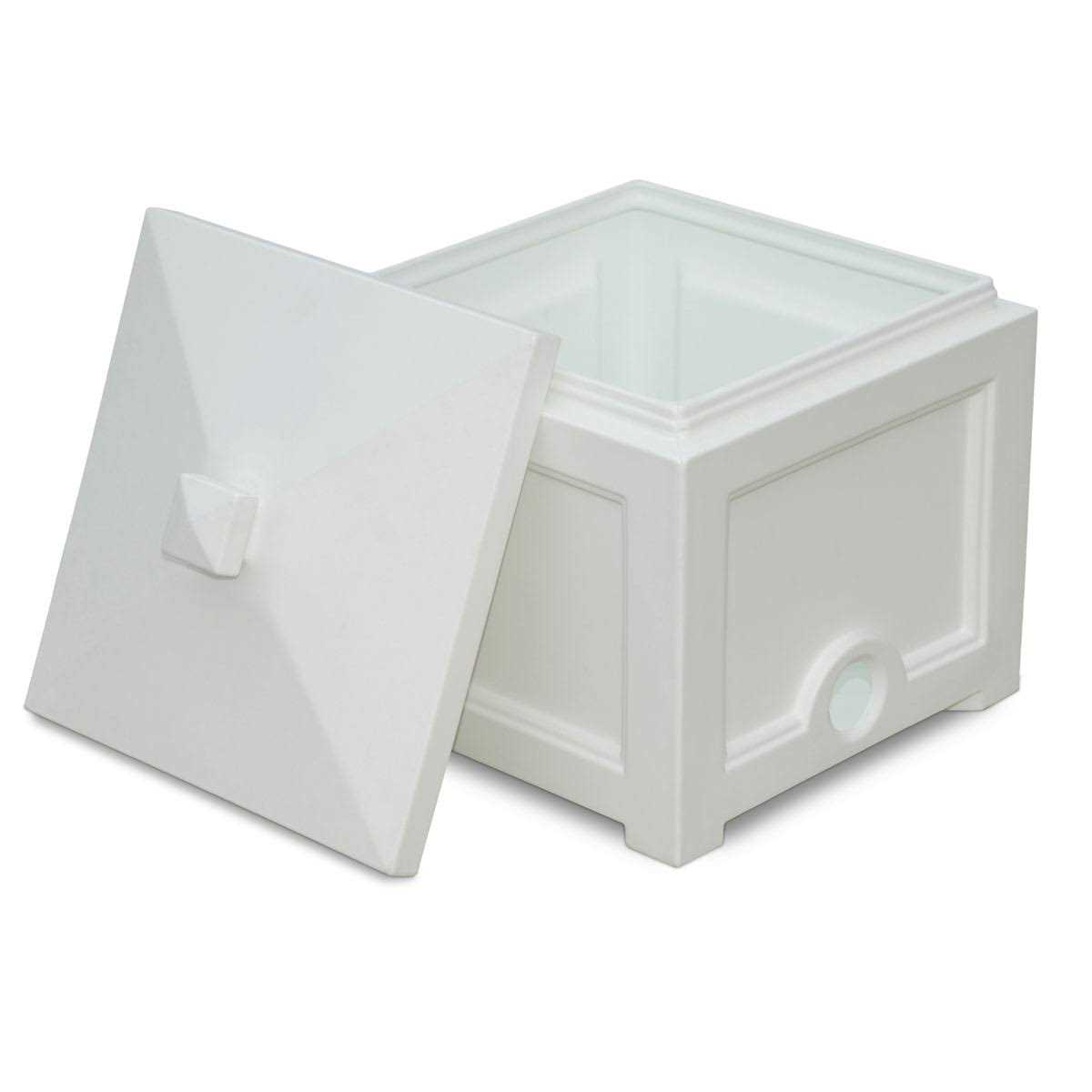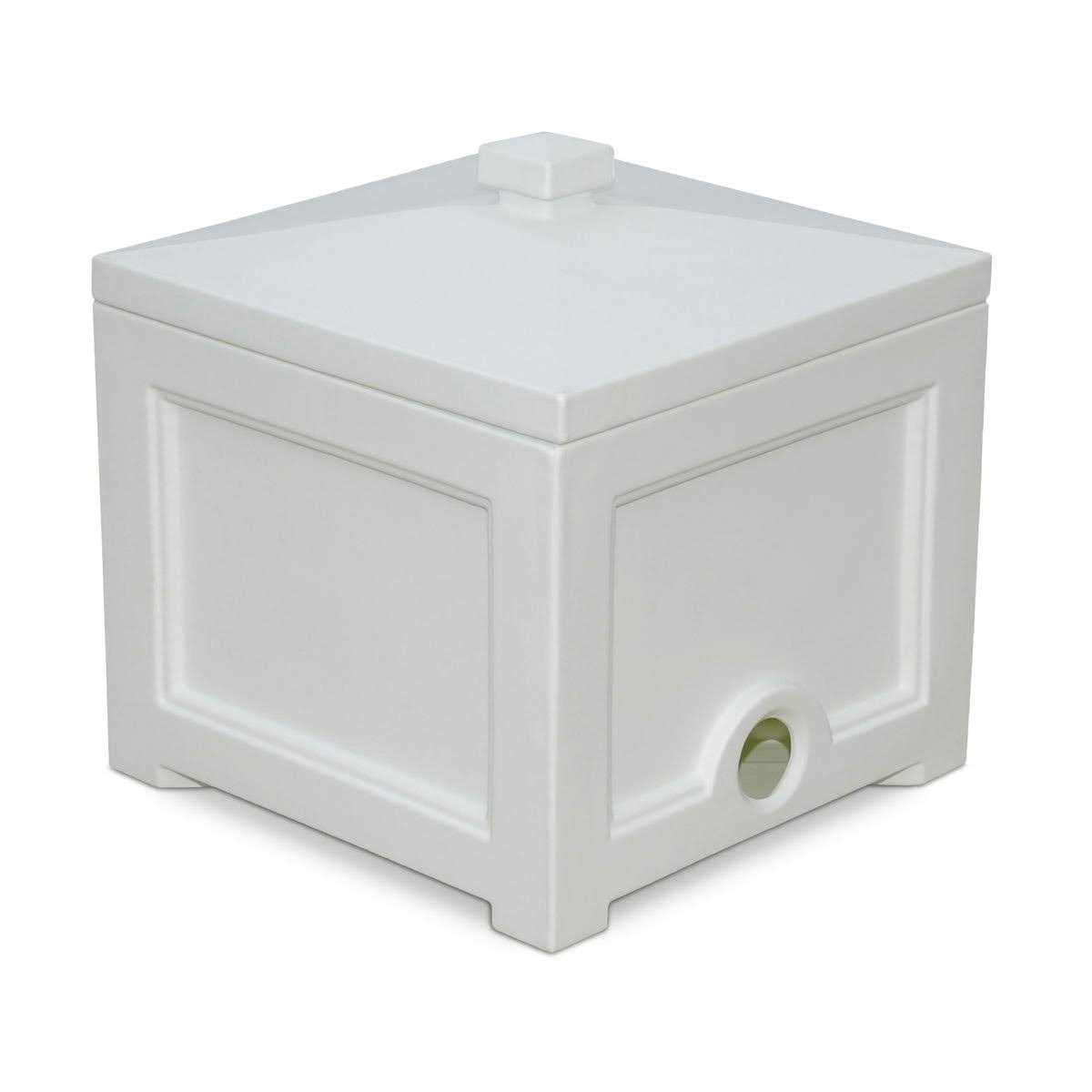 Keep garden hoses handy yet out of sight with this attractive hose storage bin. With clean lines and raised panel detailing, it resembles wood, yet it’s virtually maintenance free because it’s made from high quality polyethylene — there’s no need for annual painting or staining. Like our Fairfield planters, it has the best UV protection in the industry, with a 15-year guarantee against fading. Feed the end of the hose through the 2″ opening at the base and attach to the spigot. Holds up to 100 feet of standard garden hose.