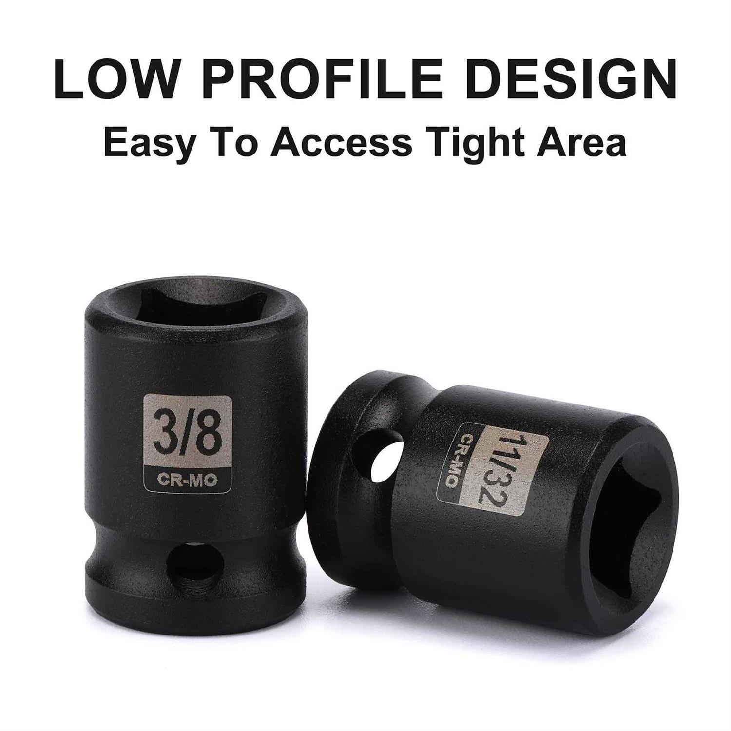 - Includes: 11pcs 3/8″drive SAE pipe plug sockets: male: 3/16″, 1/4″, 9/32″, 5/16″, 11/32″, 3/8″ ; female: 1/4″, 9/32″, 5/16″, 11/32″, 3/8″.