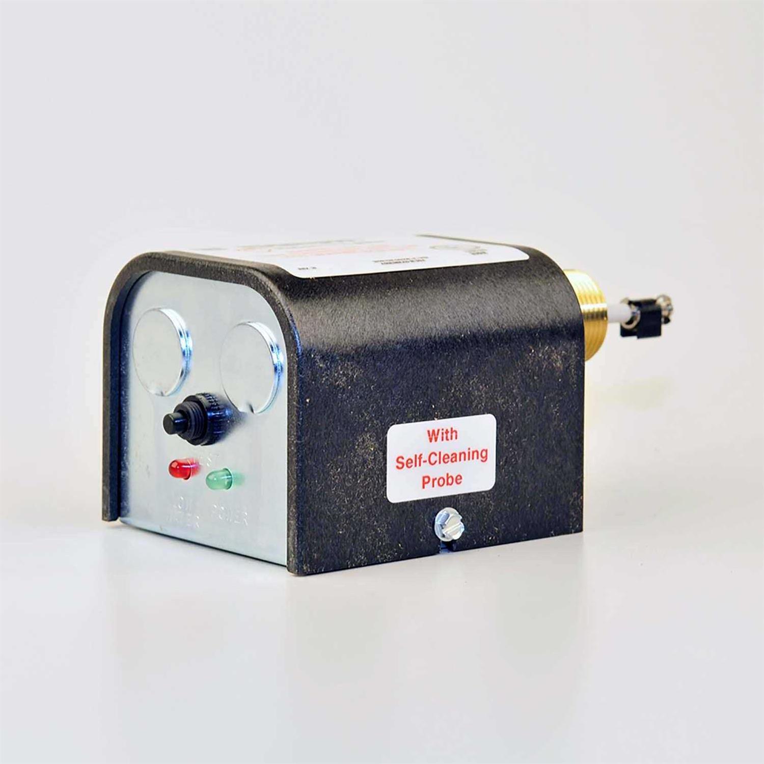 Electronic operation. Easy to install and wire. Red low water indicating LED. Green power indicating LED. Now with test button. No blow down required. 20,000 ohms probe sensitivity. Maximum ambient temperature 120 F (49 C). Maximum water temperature 250 F (121 C). Maximum water pressure 160 psi (11.2 kg/cm2). Made in the USA.