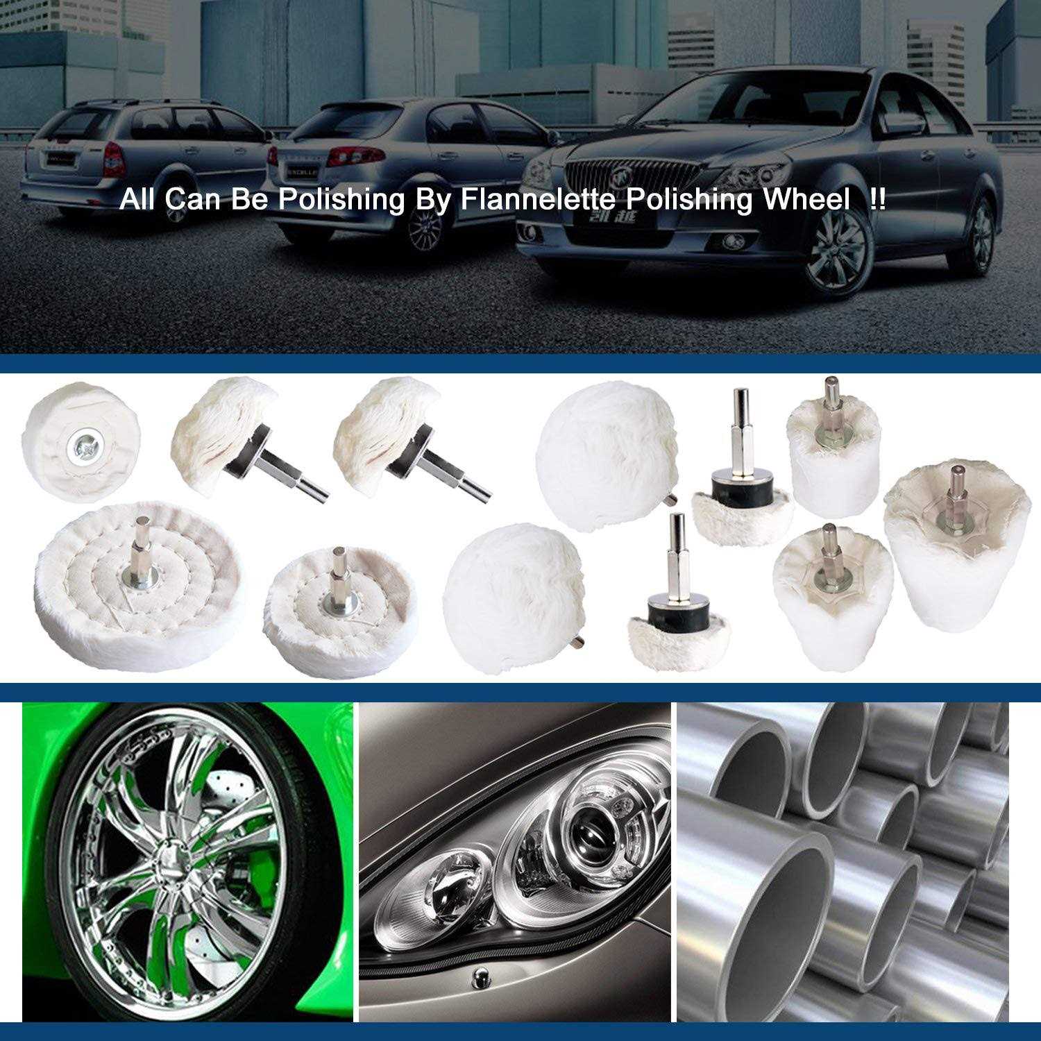 Medoon Polishing Pad Buffing Wheel Kit White Flannelette 12 Pack, Buffing Wheel for Drill for Metal Aluminum Stainless Steel Chrome Wood Plastic