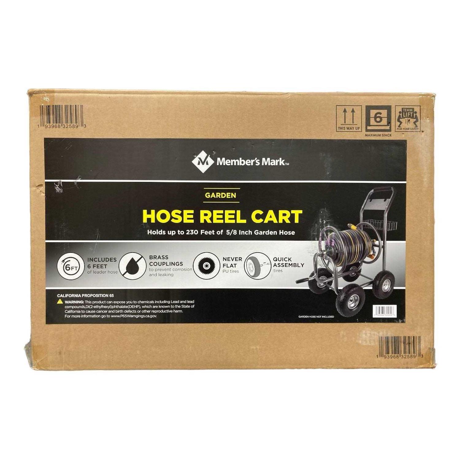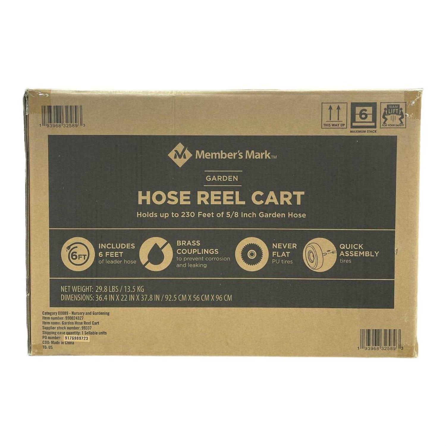 - 6-ft leader hose The Member’s Mark Outdoor Water Hose Reel Cart is the most durable heavy-duty solution for watering plants and gardens.