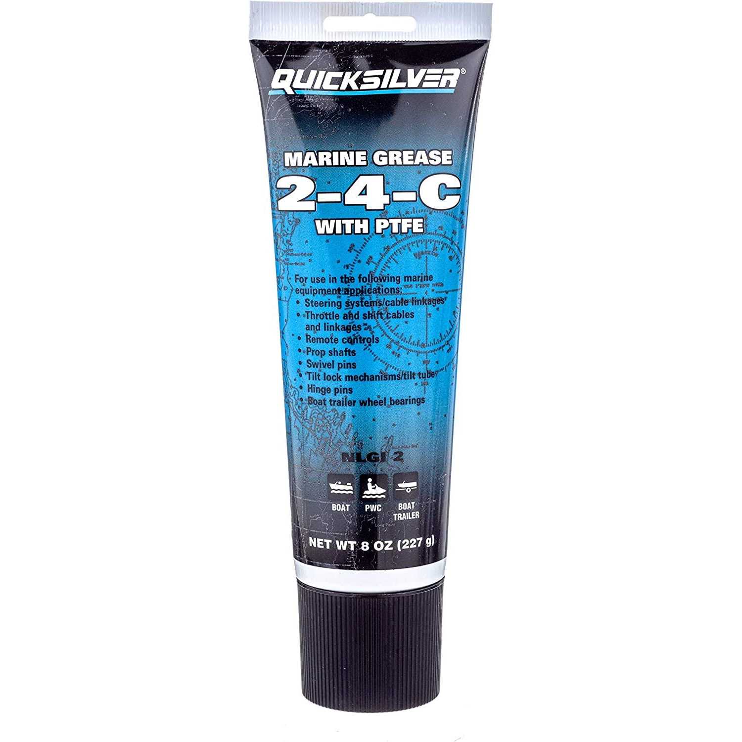 Boating by MERCURY. Details:Listing is for one 8 OZ TUBE Mercury 2‐4‐C is a high‐quality, multi‐purpose grease designed to withstand extreme friction in marine and non‐marine applications. Extremely water resistant – won’t break down when mixed with water Prevents rust and corrosion Contains PTFE for added friction protection to reduce wear Recommended uses: Steering systems Cable linkages Throttle and shift cables and linkages Remote controls Prop shafts Swivel pins Drive shaft splines Tilt lock mechanisms Tilt tubes Hinge pins Trailer wheel bearings Do not use on internal engine parts such as needle bearings.